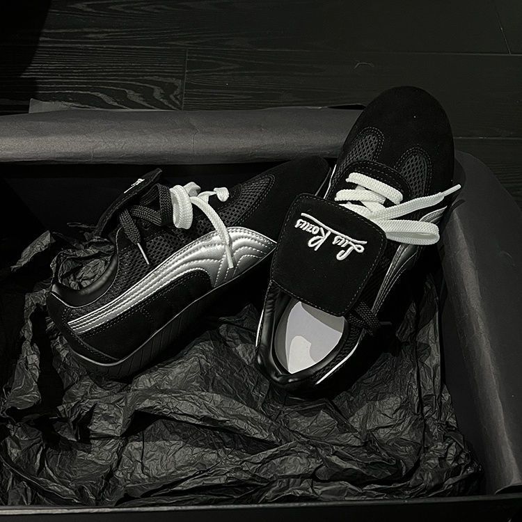 여성을위한 복고풍 도덕 훈련 신발 2025 봄 새로운 통기성 라운드 발가락 레이스 업 플랫 바닥 여성을위한 가벼운 포레스트 검프 신발스토어 가기