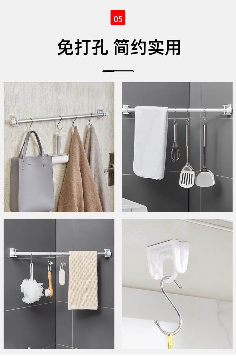 타월바, 접착후크, 펀치프리 커튼, 샤워커튼봉 브래킷, 360도 회전걸이링, 업그레이드된 원형걸이봉 브래킷
