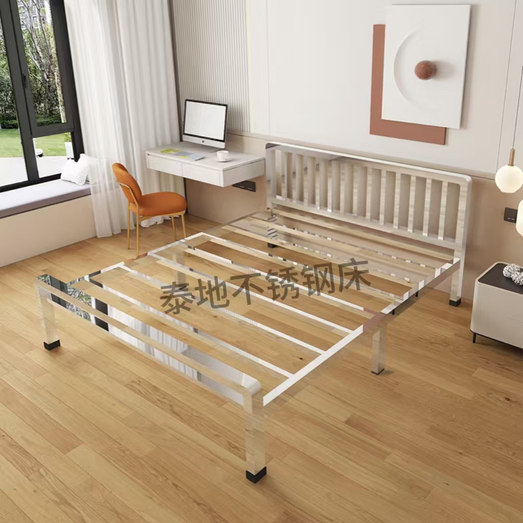 두꺼운 304 스테인레스 스틸 침대 싱글 침대 1.2m 더블 침대 1.8m 간단한 친환경 1.5m 선반 침대스토어 가기