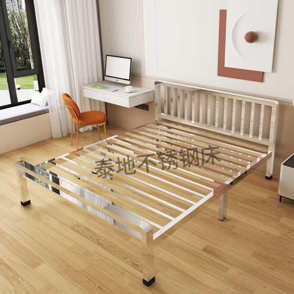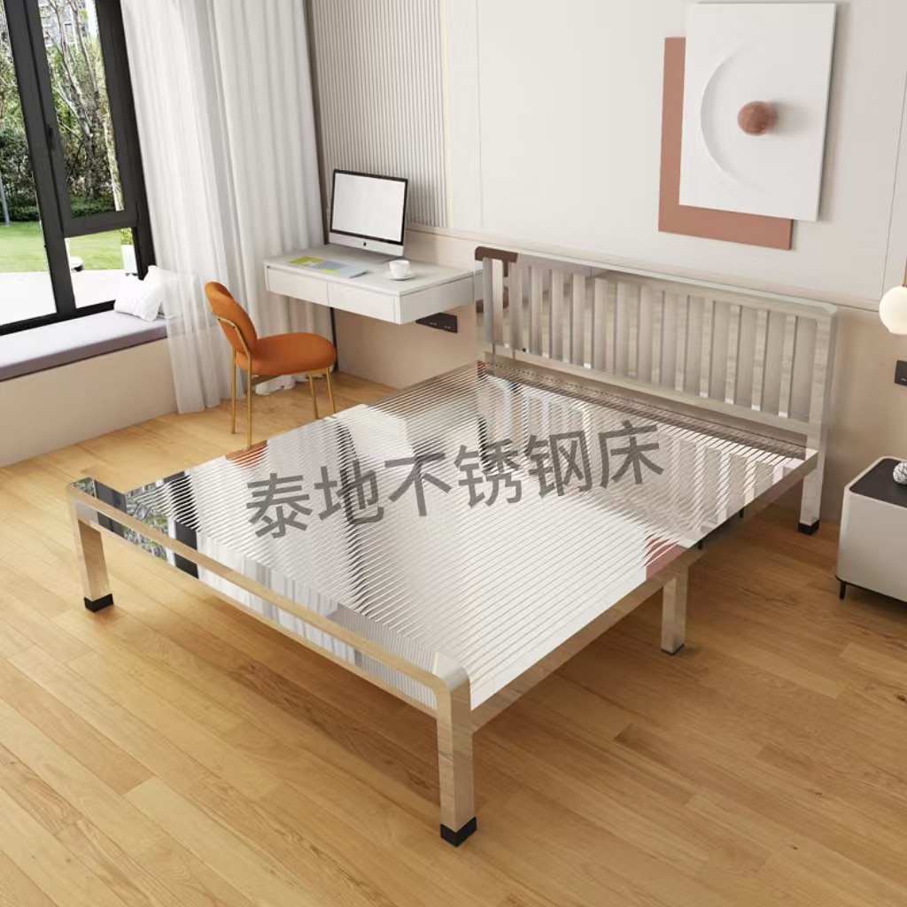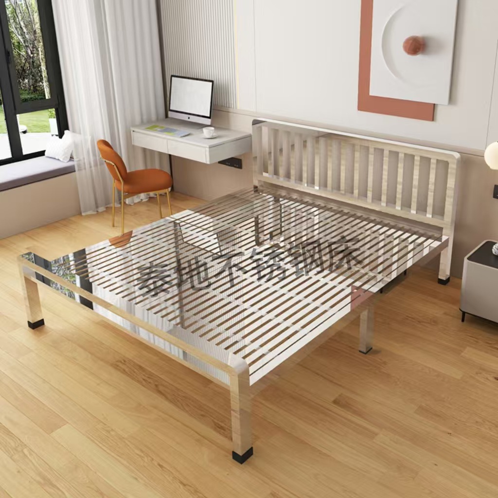 두꺼운 304 스테인레스 스틸 침대 싱글 침대 1.2m 더블 침대 1.8m 간단한 친환경 1.5m 선반 침대