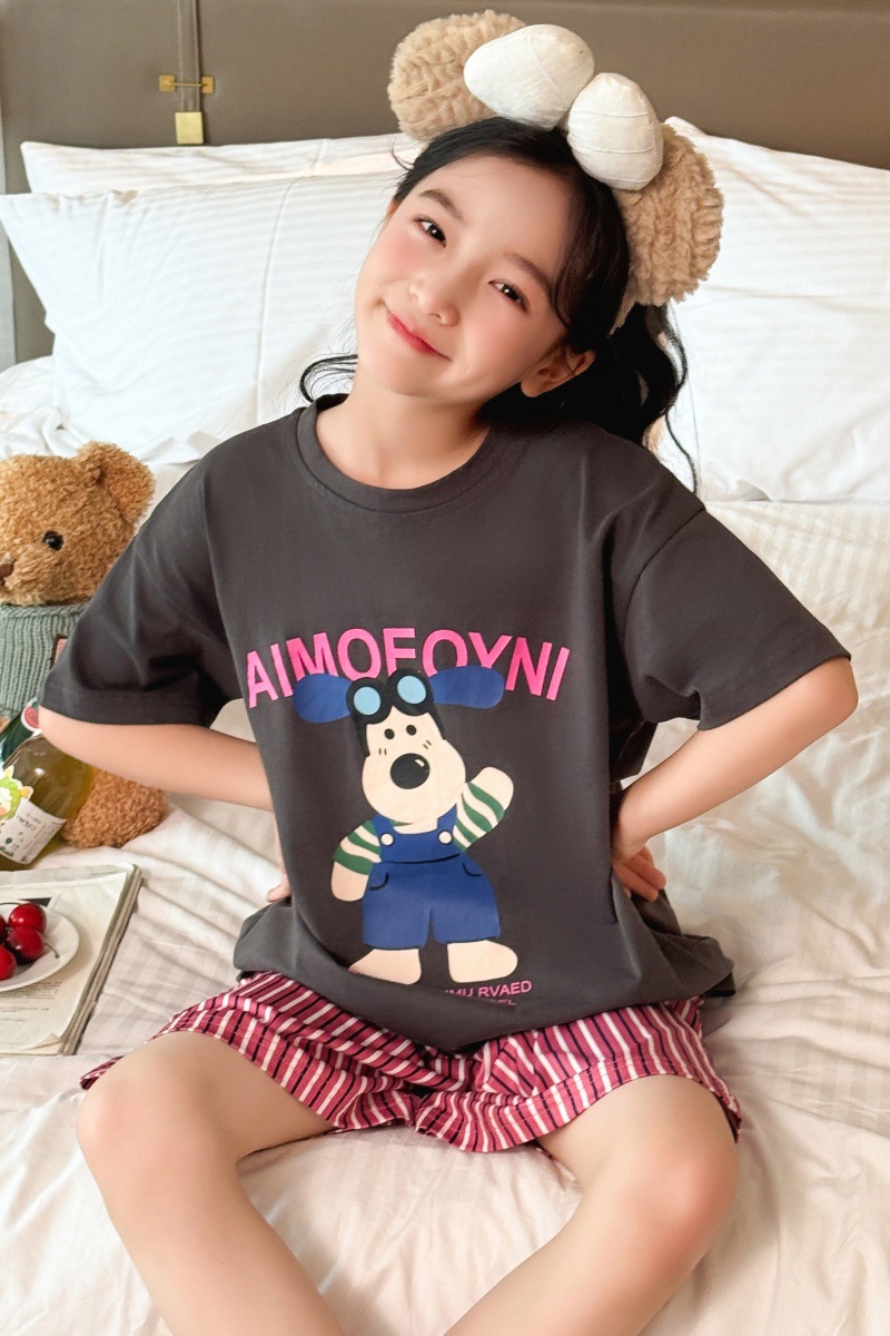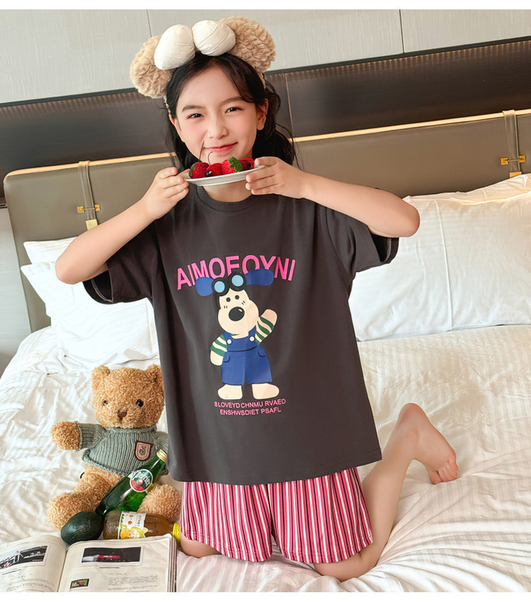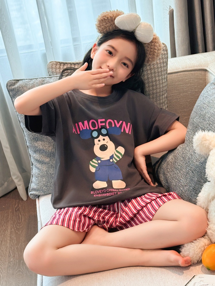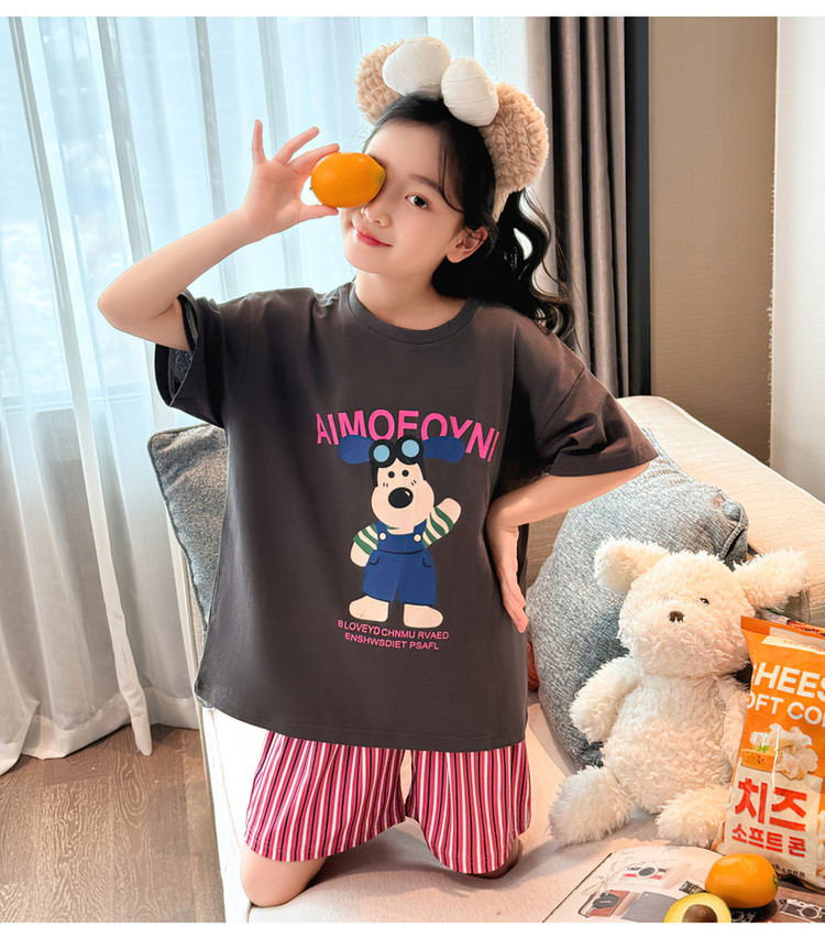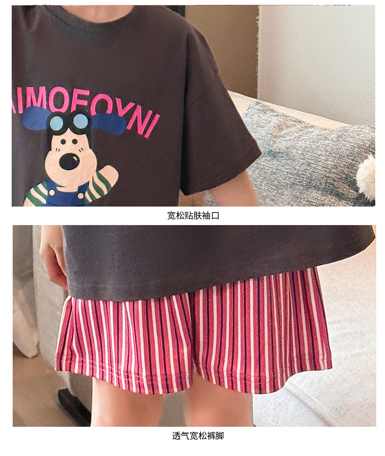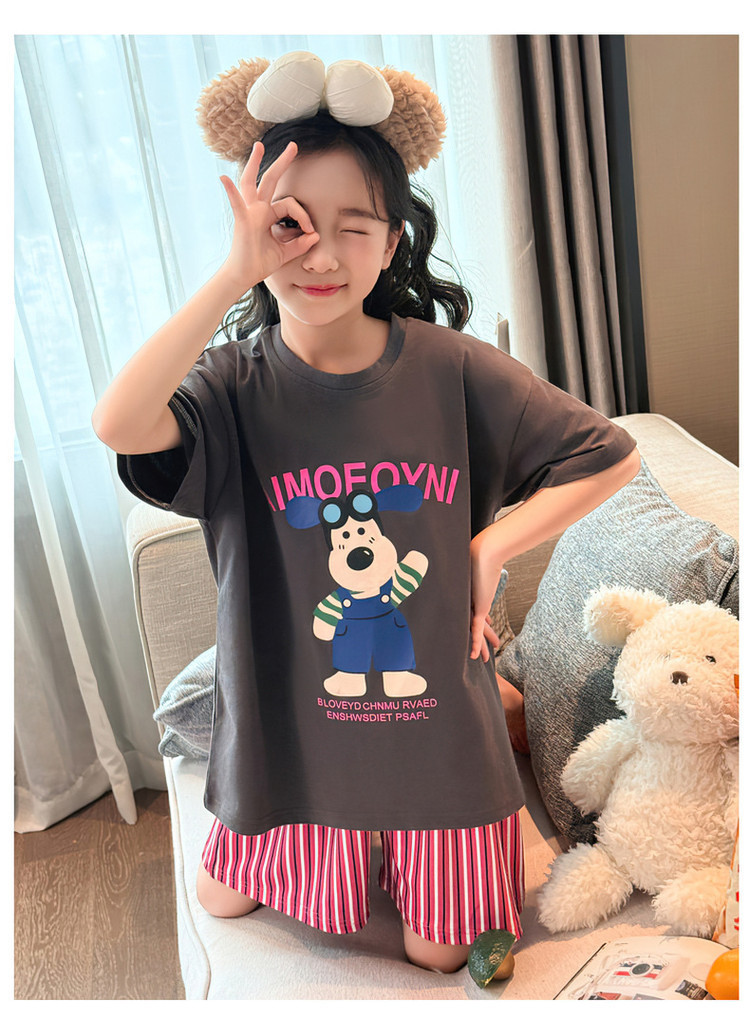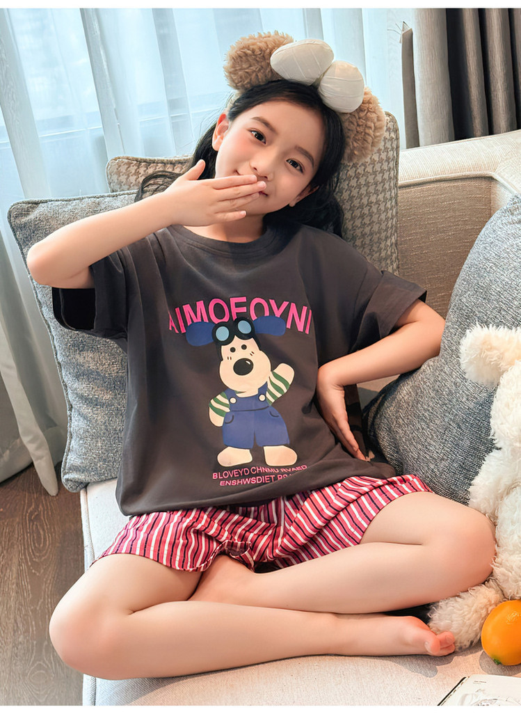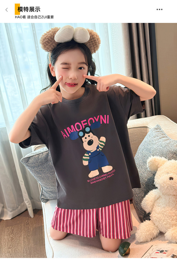 도매 어린이 가정 의류 여름 소녀 반팔 만화 잠옷 잠옷 캐주얼 느슨한 소녀 겉옷 투피스 세트스토어 가기