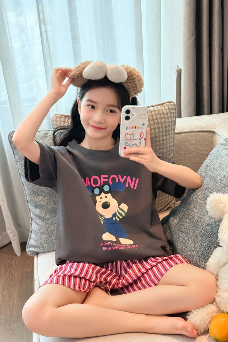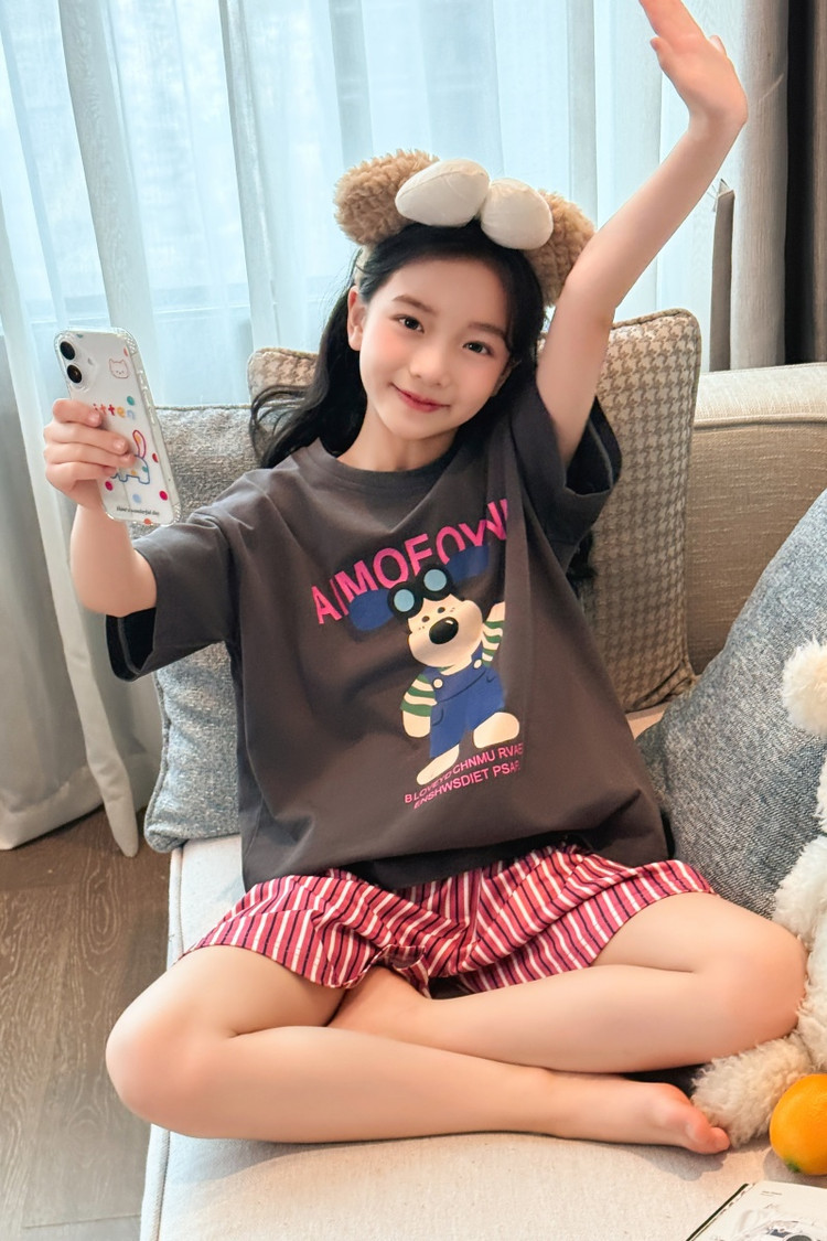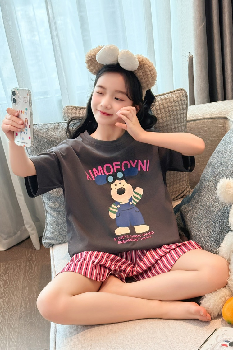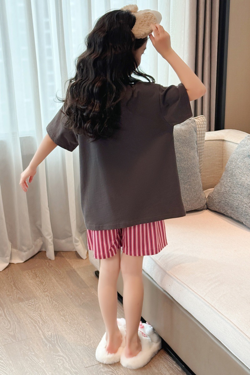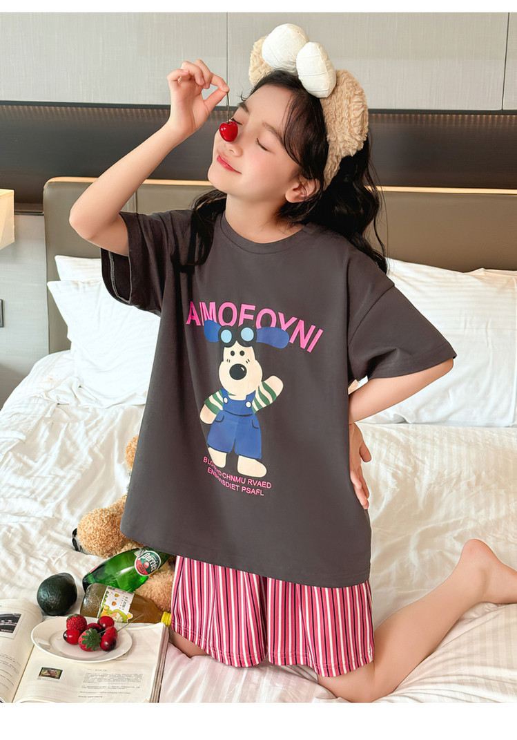 도매 어린이 가정 의류 여름 소녀 반팔 만화 잠옷 잠옷 캐주얼 느슨한 소녀 겉옷 투피스 세트