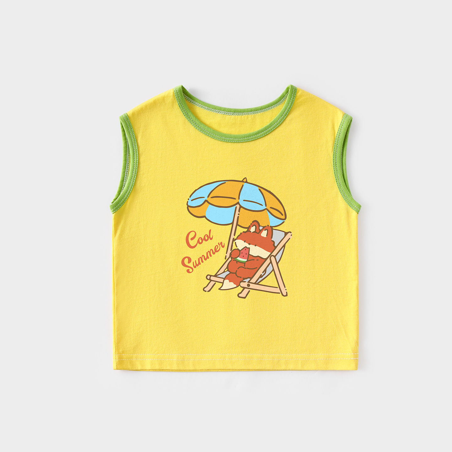 어린이 조끼 여름 얇은 소년의 순수한면 민소매 티셔츠 아기의 짧은 최고 소녀 여름 조끼 아동복