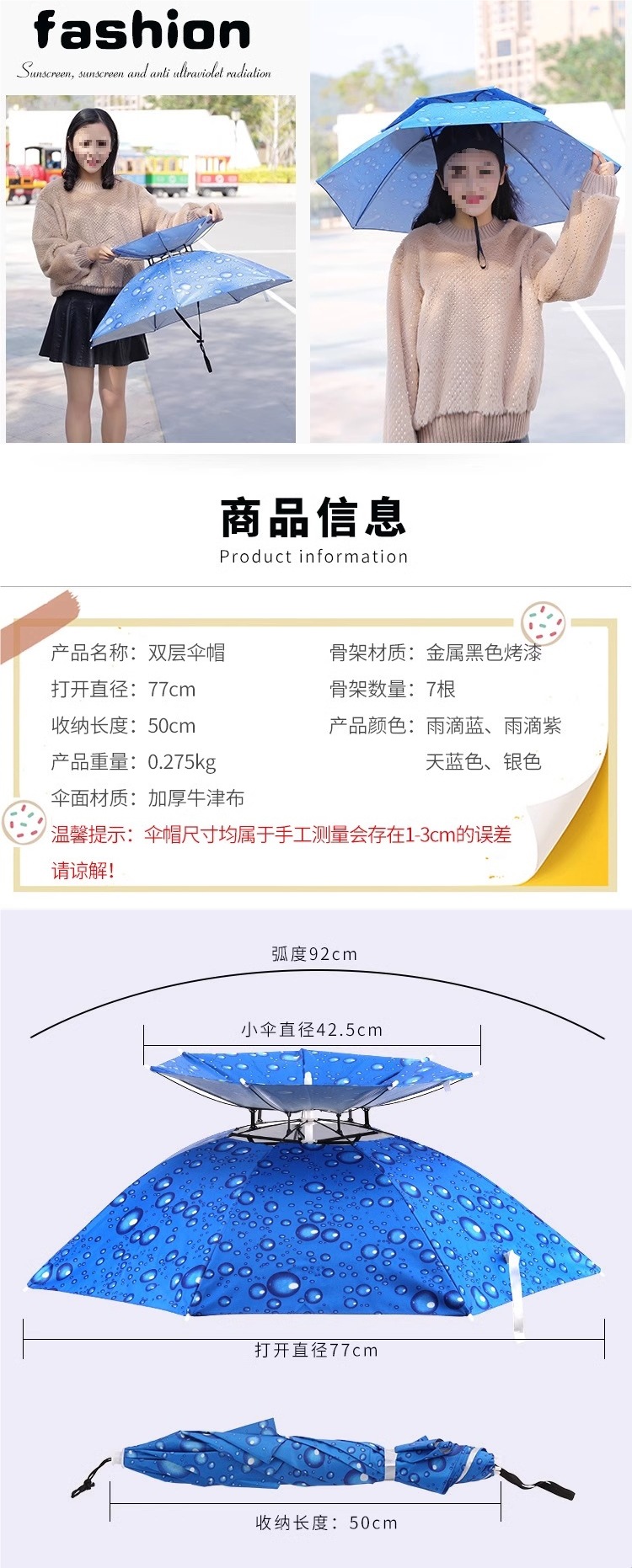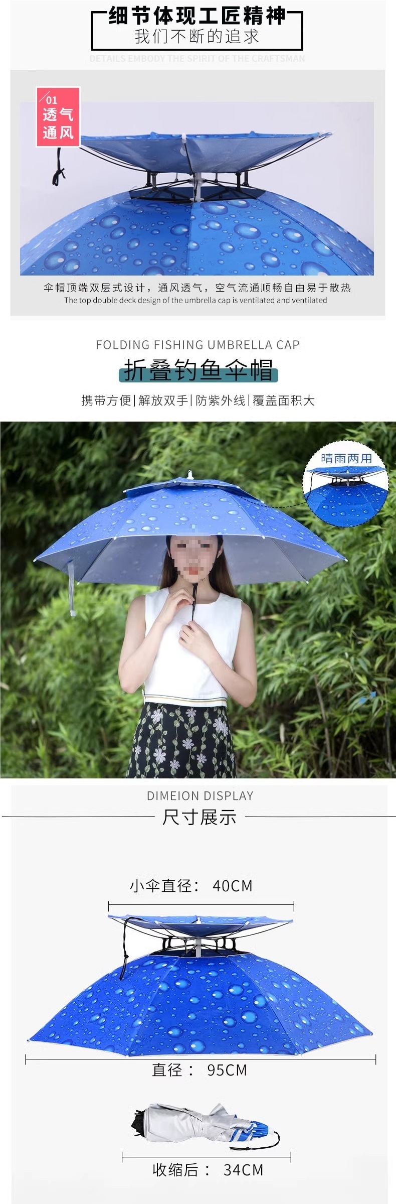 우산모자, 우산모자, 낚시모자, 태양우산, 야외차채집, 위생, 자외선차단, 모자, 접이식 대형우산