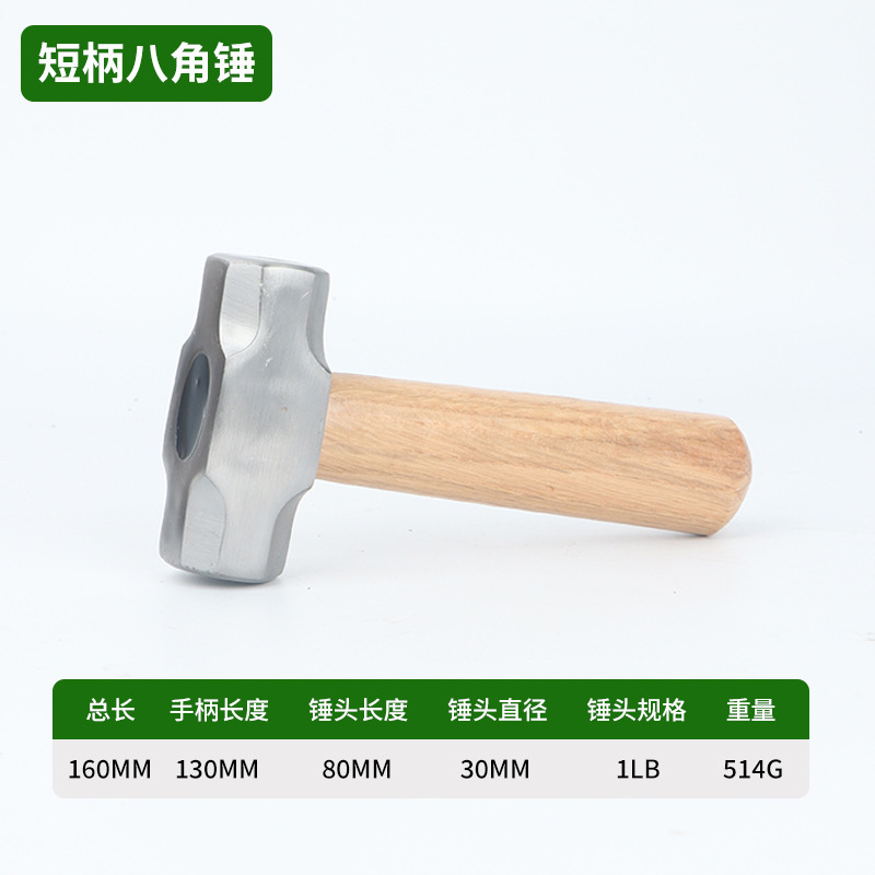 • 짧은 손잡이 녹색 강철 나무 팔각형 망치