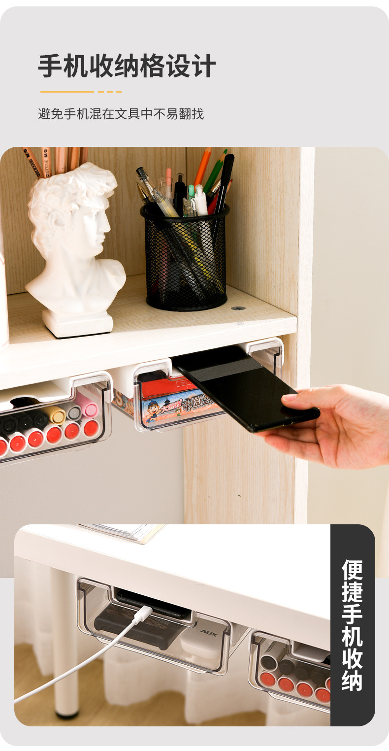 책상 아래 서랍 상자 사무실 데스크탑 보관 상자 책상 개조 및 정리 유물 보이지 않는 문구 보관함