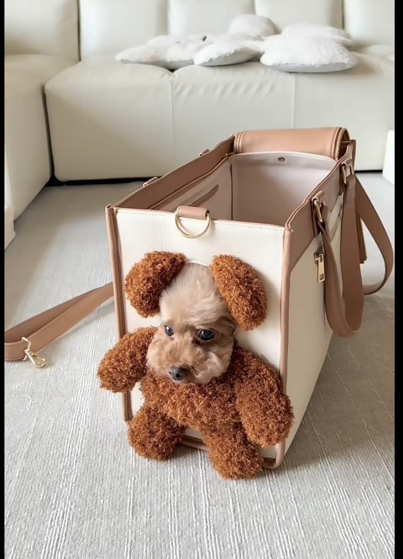 귀여운 외출용 대용량 가방, 머리가 보이는 곰돌이 플러시 고양이 숄더백, 소형견 핸드백, 애완견 가방스토어 가기
