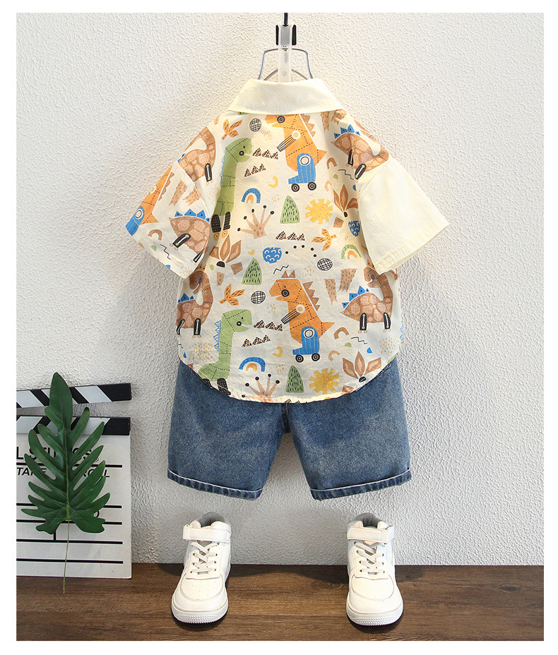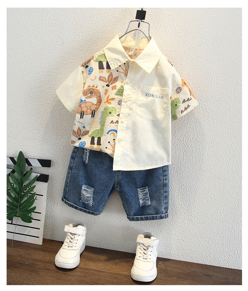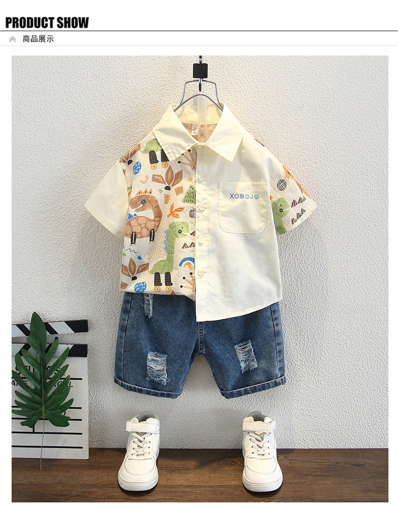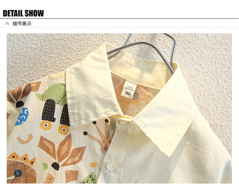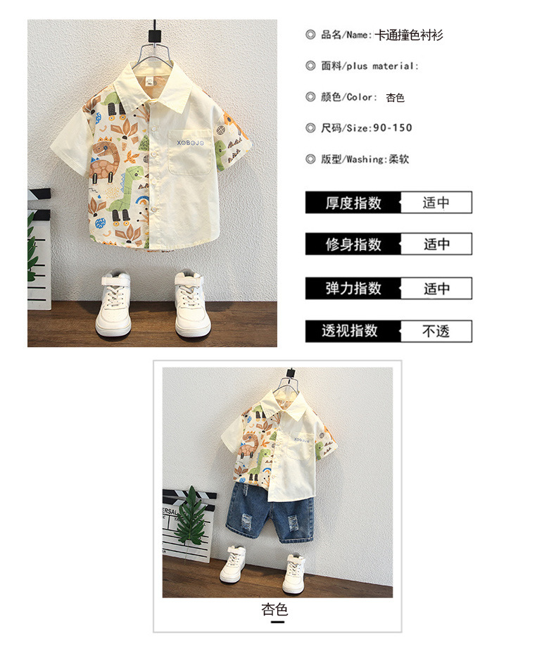 남아용 여름 셔츠, 루즈핏, 부드러운 감촉, 보풀 방지, 홍콩 스타일, 얇은, 변색 방지, 순면 셔츠, 여름옷, 만화 프린트 의류스토어 가기