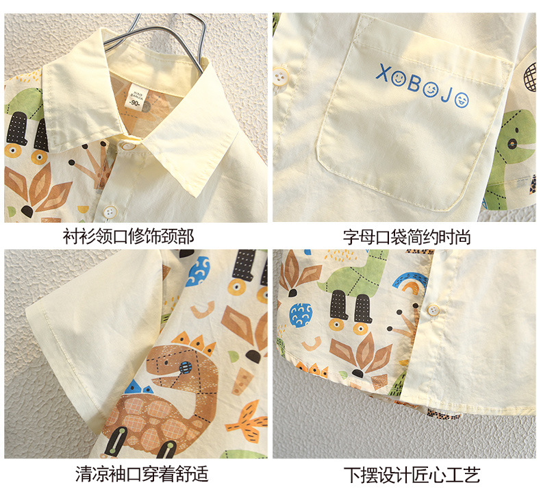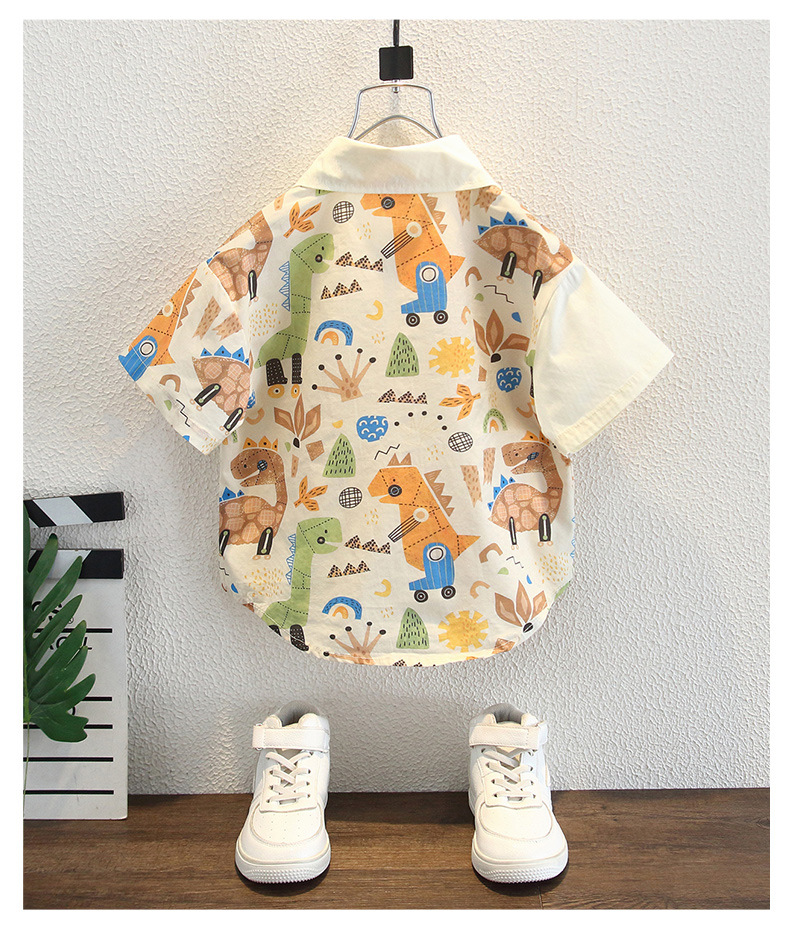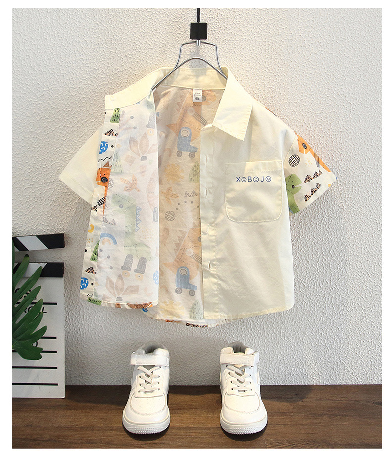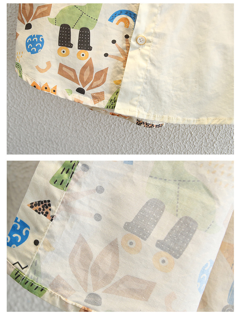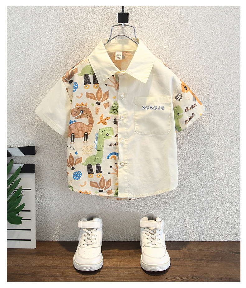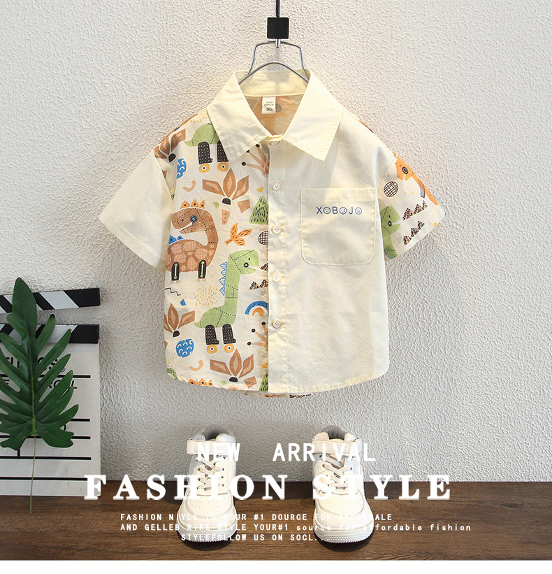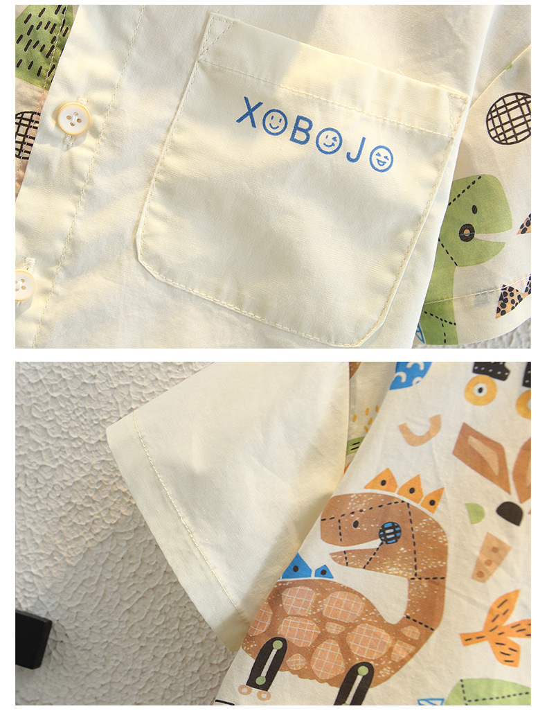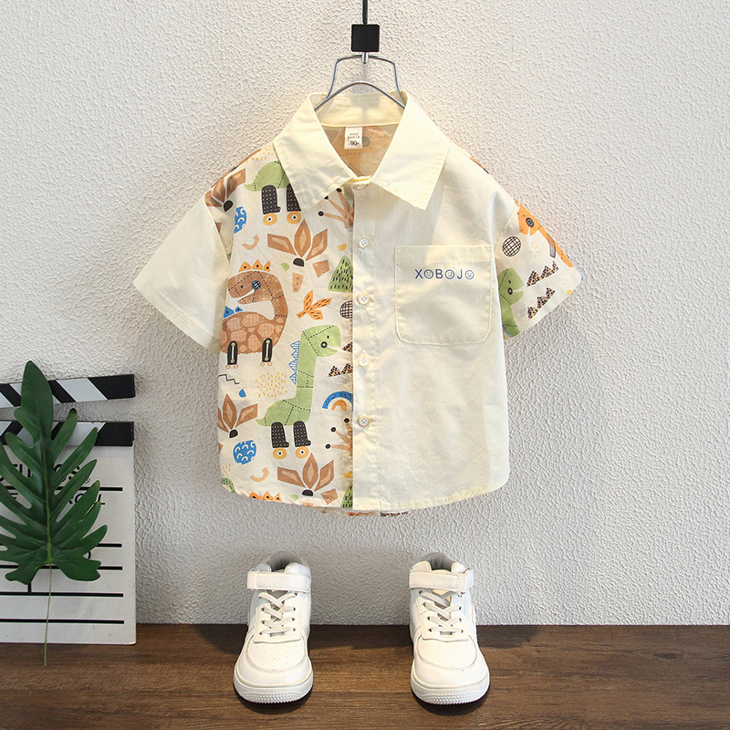 남아용 여름 셔츠, 루즈핏, 부드러운 감촉, 보풀 방지, 홍콩 스타일, 얇은, 변색 방지, 순면 셔츠, 여름옷, 만화 프린트 의류