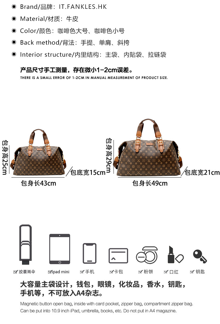 국경 간 특별 가방 2025 새로운 패션 캐주얼 휴대용 여행 가방 여성 대용량 정품 가죽 크로스 바디 토트 백