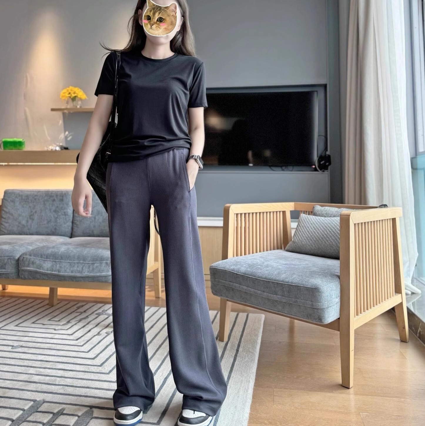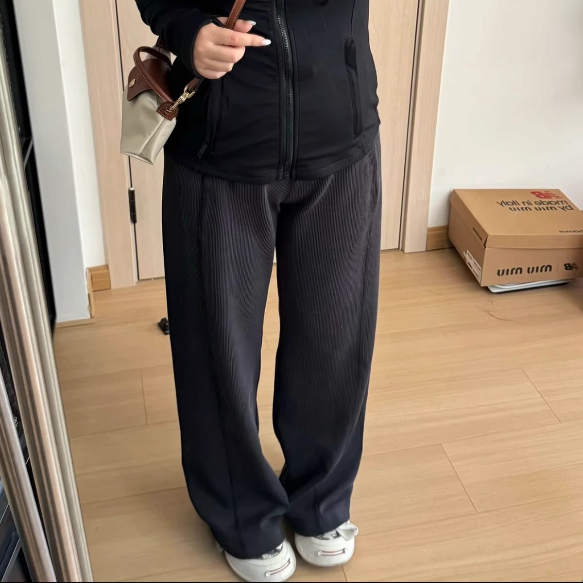 소프트스트림 나사형 요가 와이드 팬츠 여성 여름 얇은 스타일 2025 동일 스타일 화이트 스트레이트 롱 팬츠 스포츠 하이웨이스트