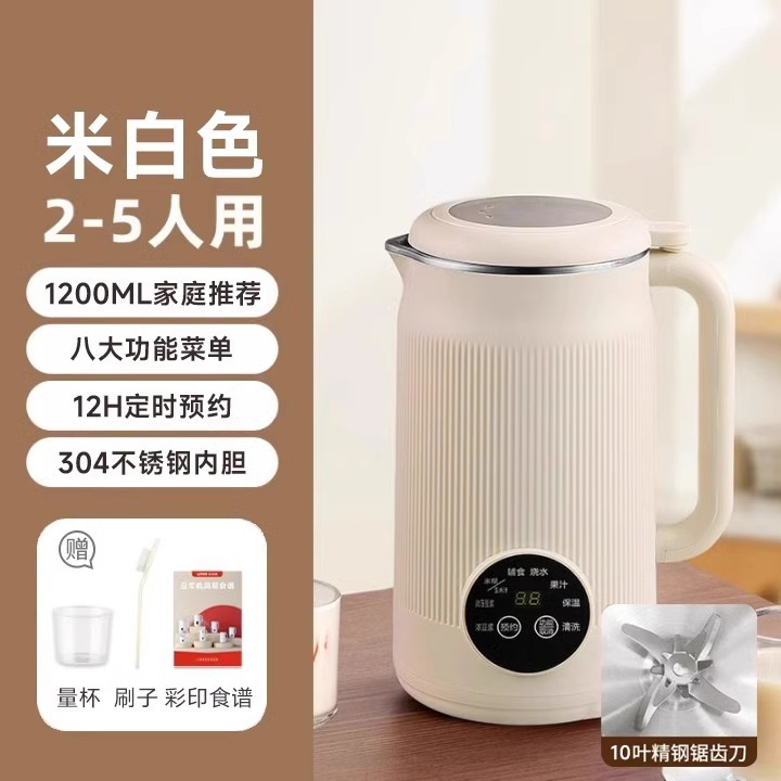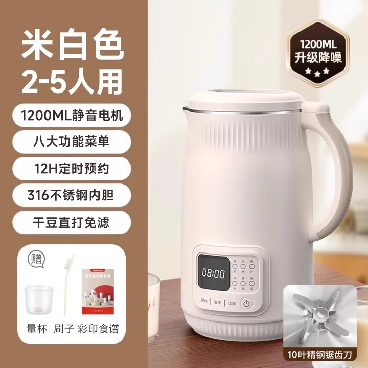 • 오프화이트 [1200ml] 316 내부탱크 + 10잎칼 + 다기능 타이머 + 자동세척 + 이유식 보온