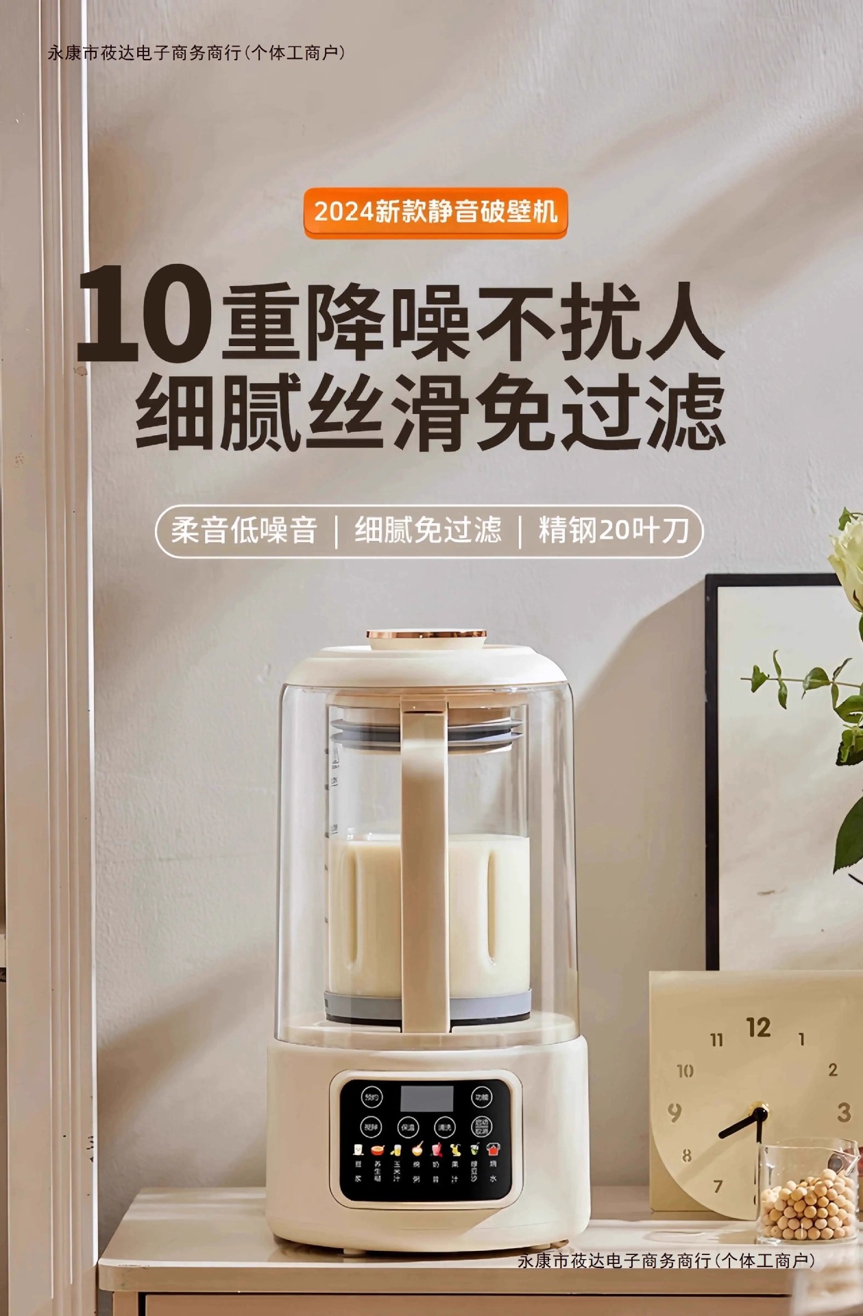 • 오프화이트_방음커버[상위모델] 10겹 소음감소_20날칼날_1500ml_건두를 직접분쇄_조리불필요, 필터불필요