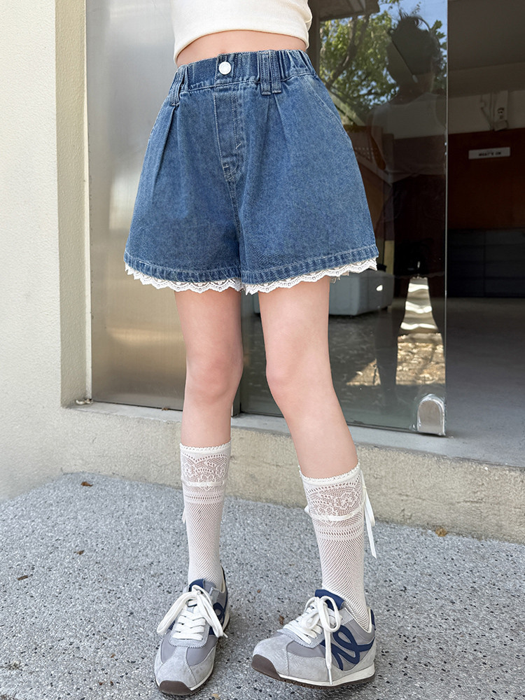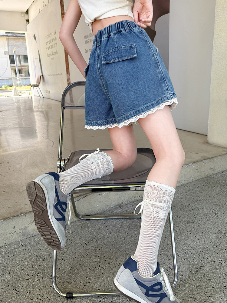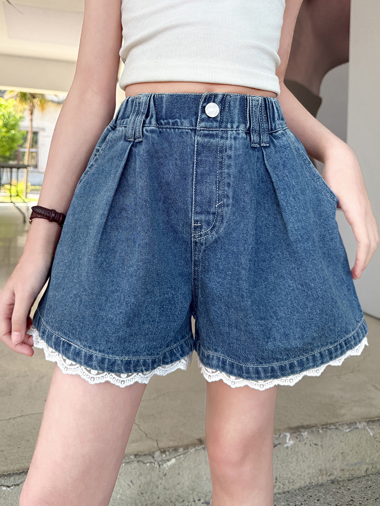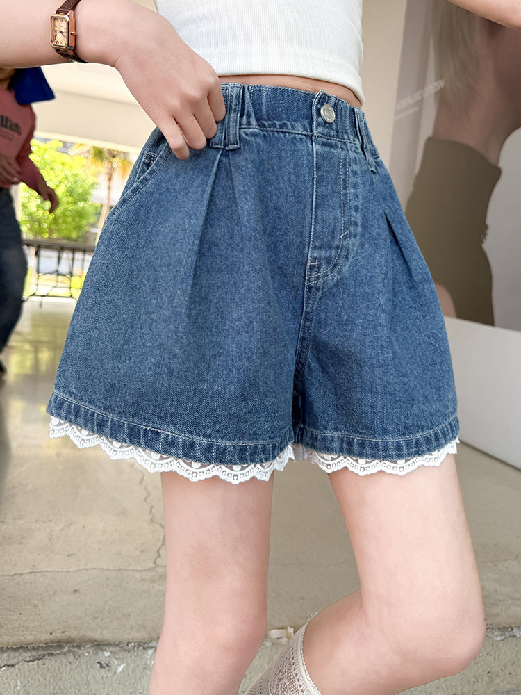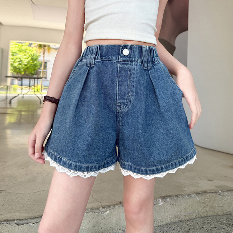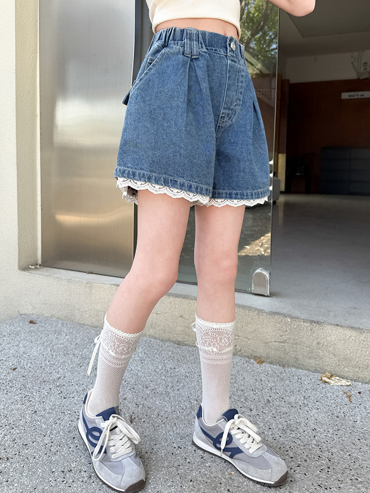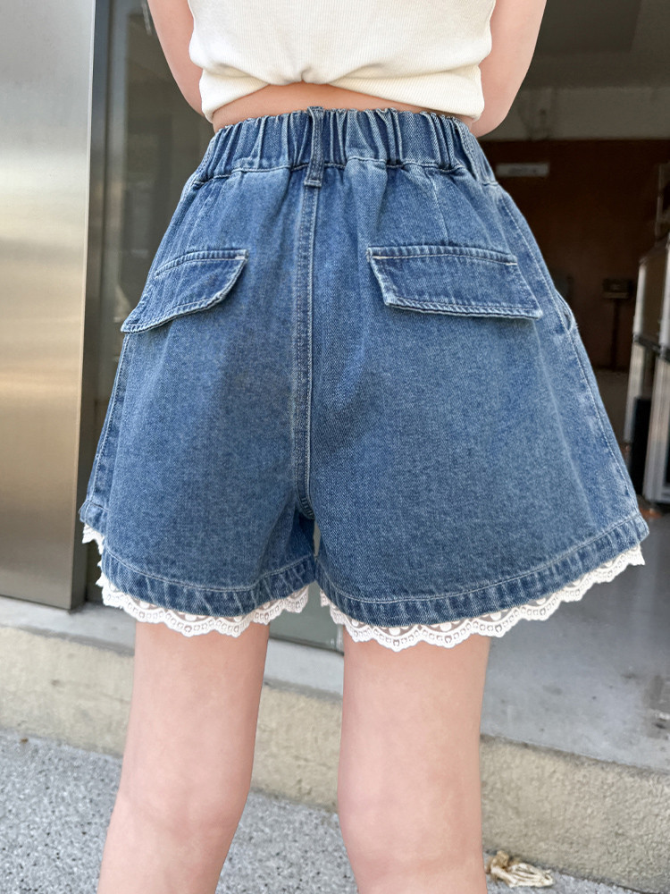 소녀의 여름 외부 착용 레이스 데님 반바지 어린이 올매치 느슨한 캐주얼 소녀의 여름 짧은 유행 바지