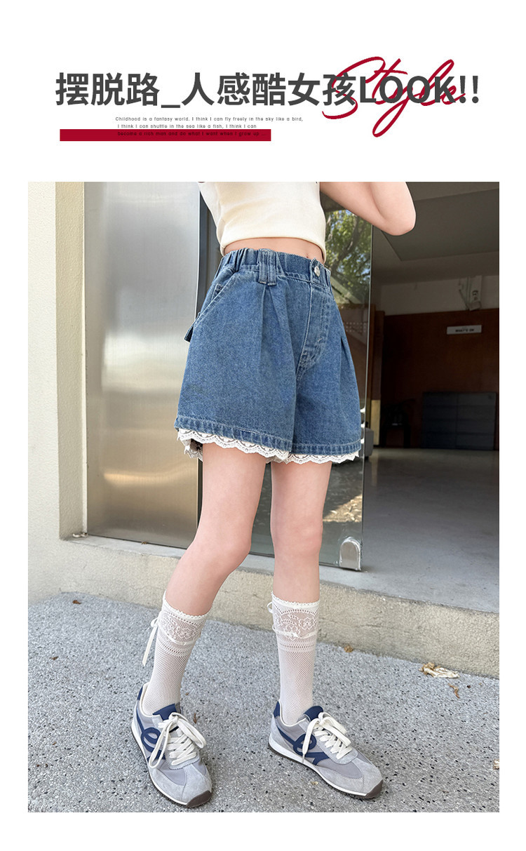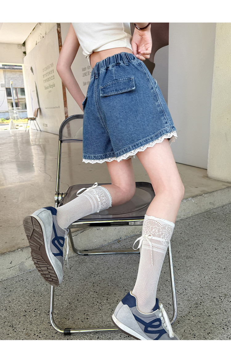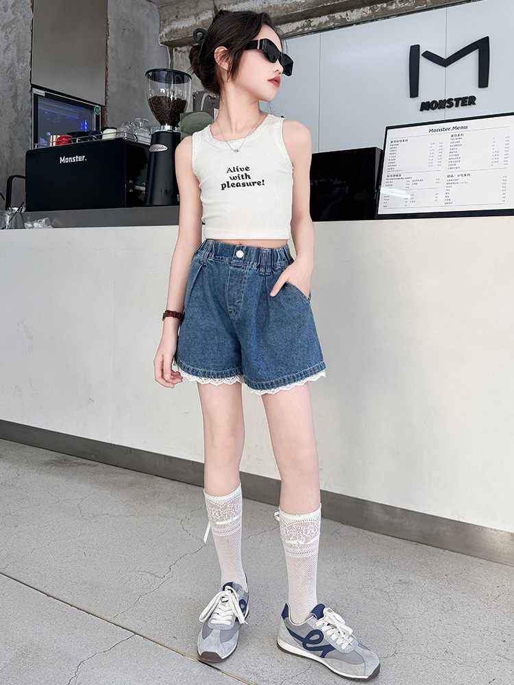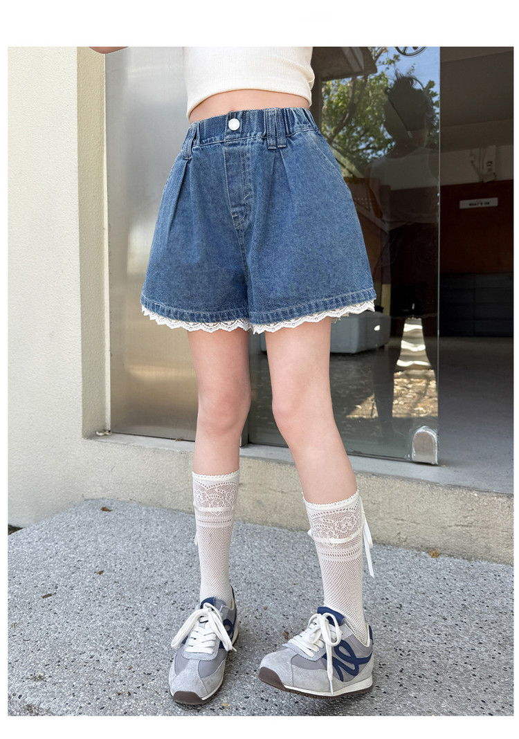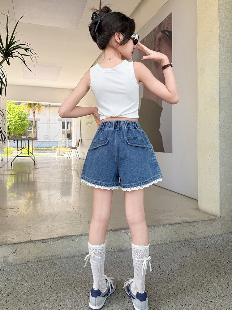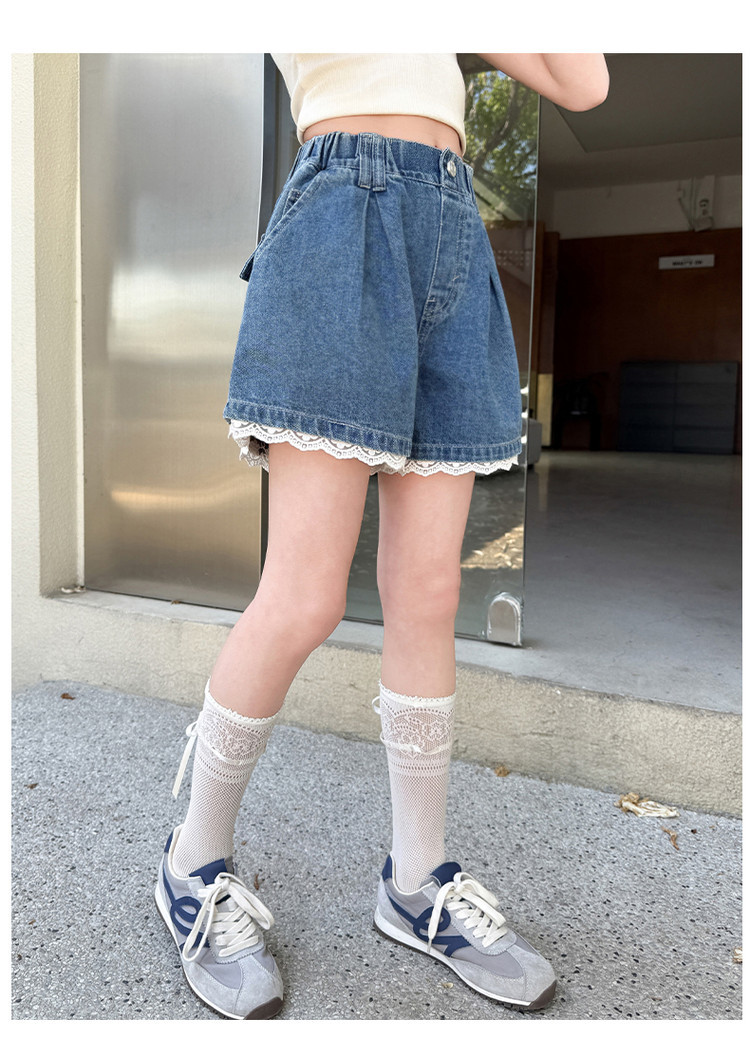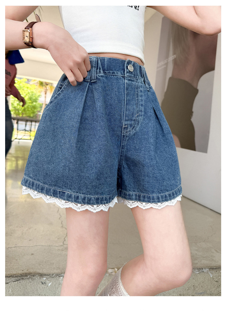소녀의 여름 외부 착용 레이스 데님 반바지 어린이 올매치 느슨한 캐주얼 소녀의 여름 짧은 유행 바지