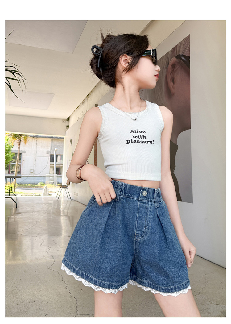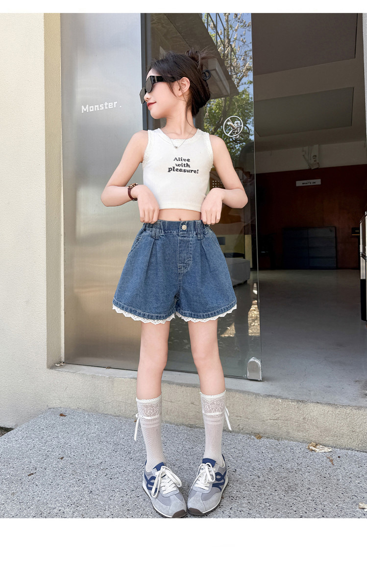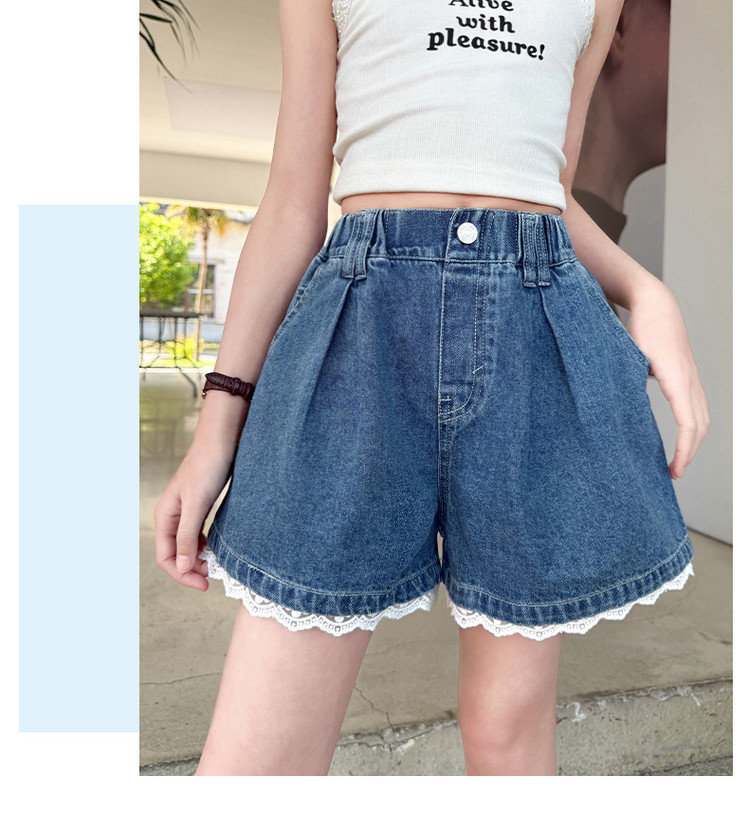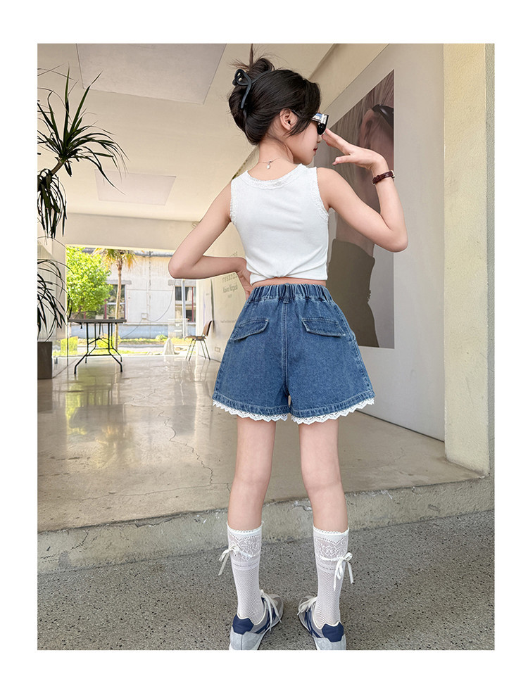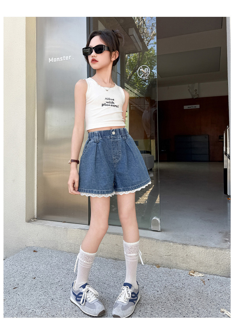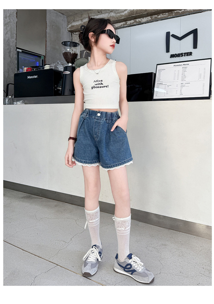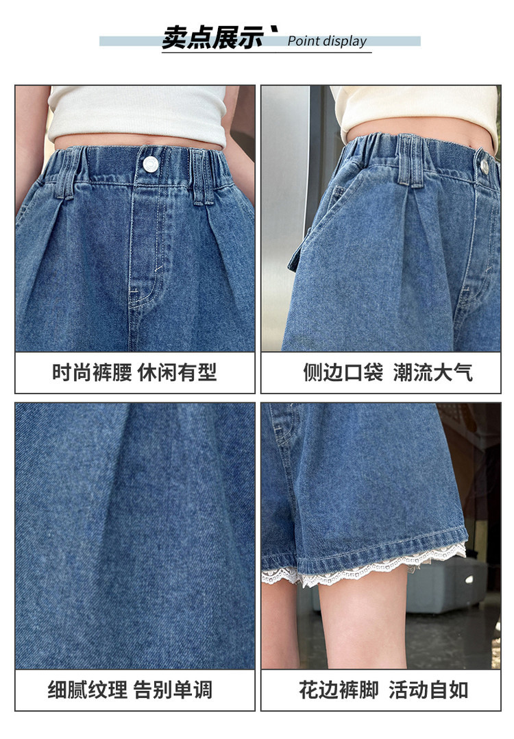 소녀의 여름 외부 착용 레이스 데님 반바지 어린이 올매치 느슨한 캐주얼 소녀의 여름 짧은 유행 바지