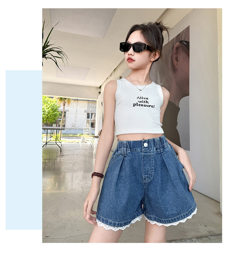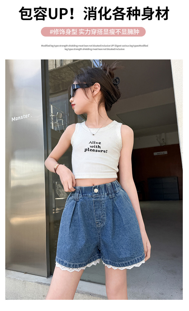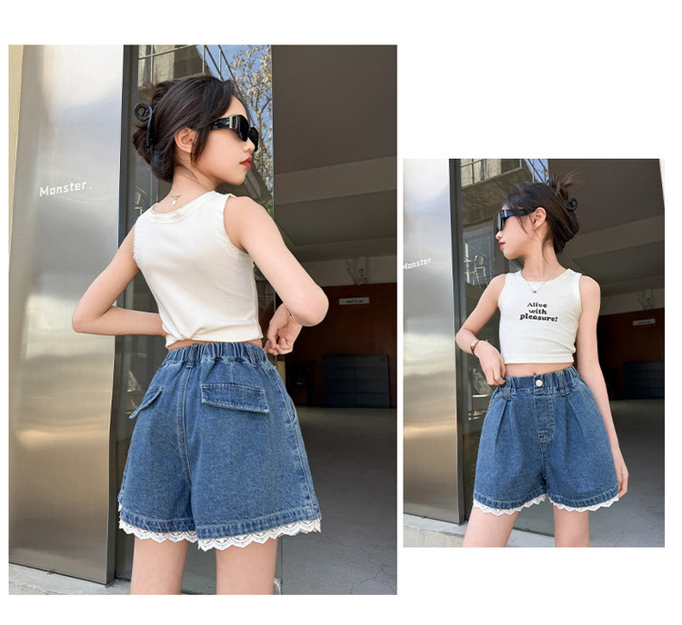 소녀의 여름 외부 착용 레이스 데님 반바지 어린이 올매치 느슨한 캐주얼 소녀의 여름 짧은 유행 바지스토어 가기