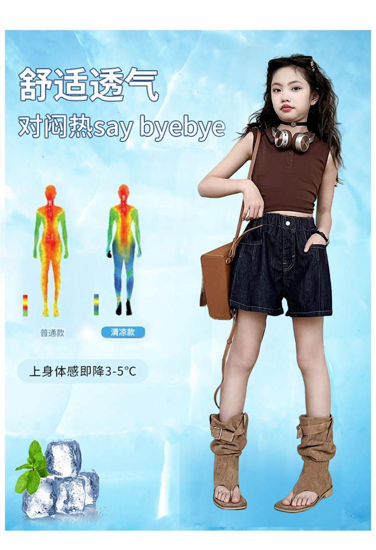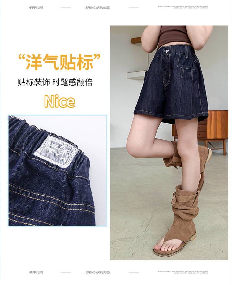 소녀 데님 반바지 여름 얇은 2025 새로운 스타일 미드 빅 키즈 웨스턴 스타일 올 매치 루즈 아우터 퓨어 컬러 트렌디 팬츠스토어 가기