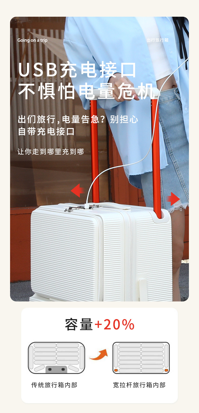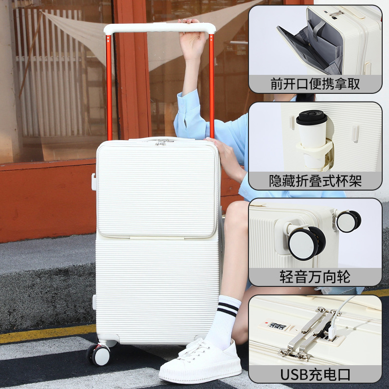 9666전면 개방형 여행가방 24inch 대용량 USB 충전 컵홀더 포함 다기능 20인치 여행가방