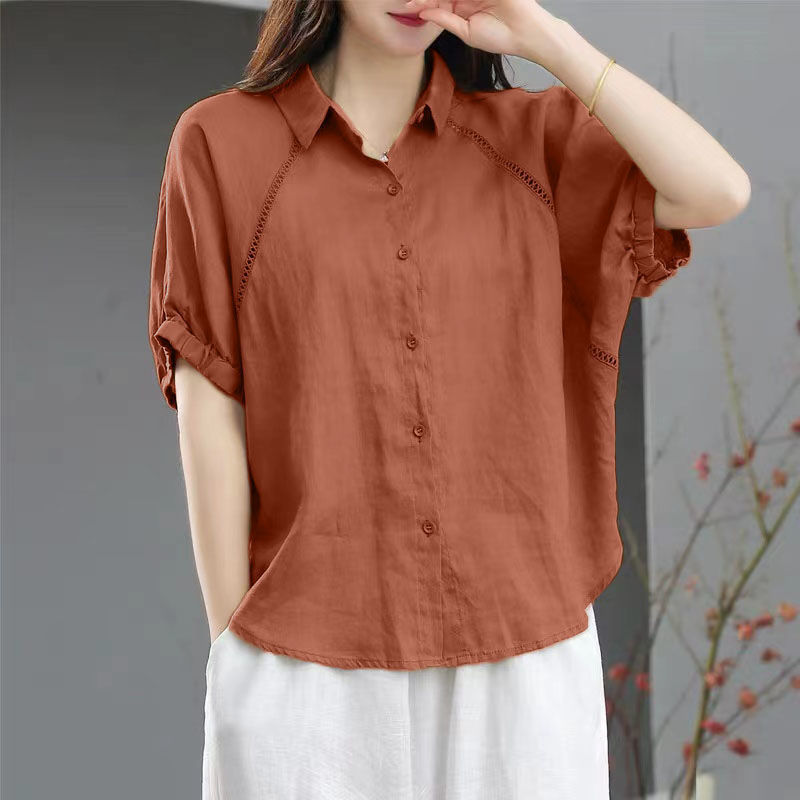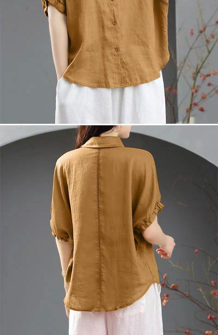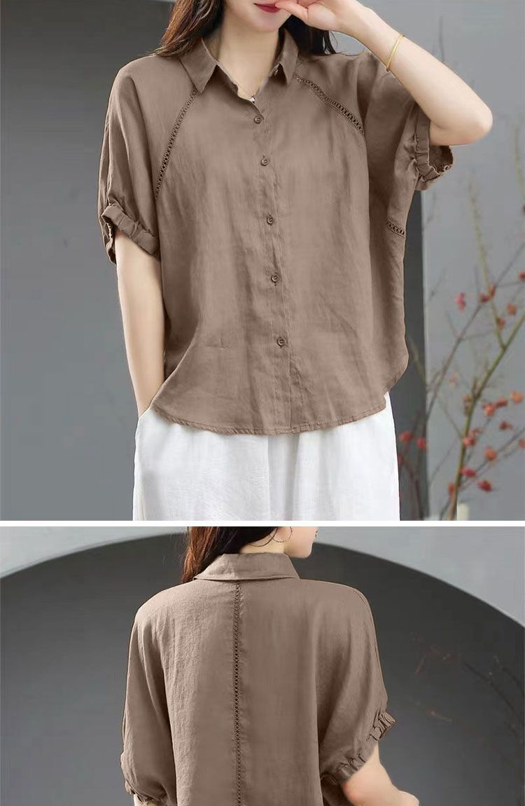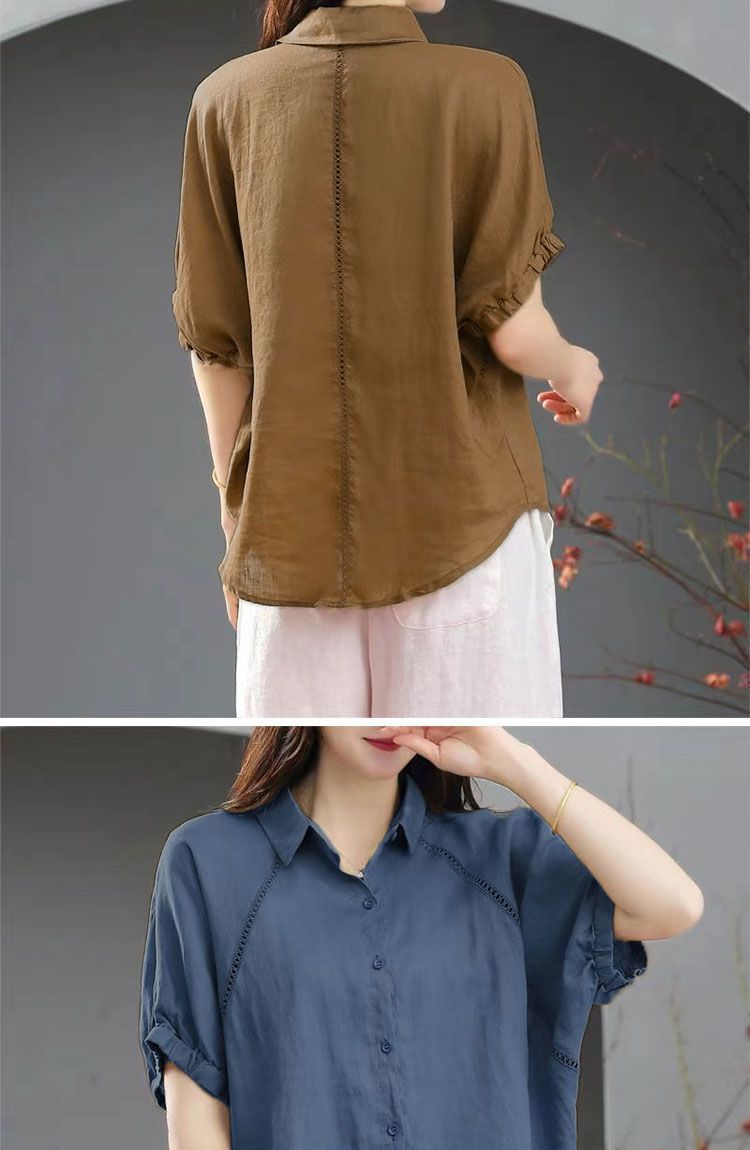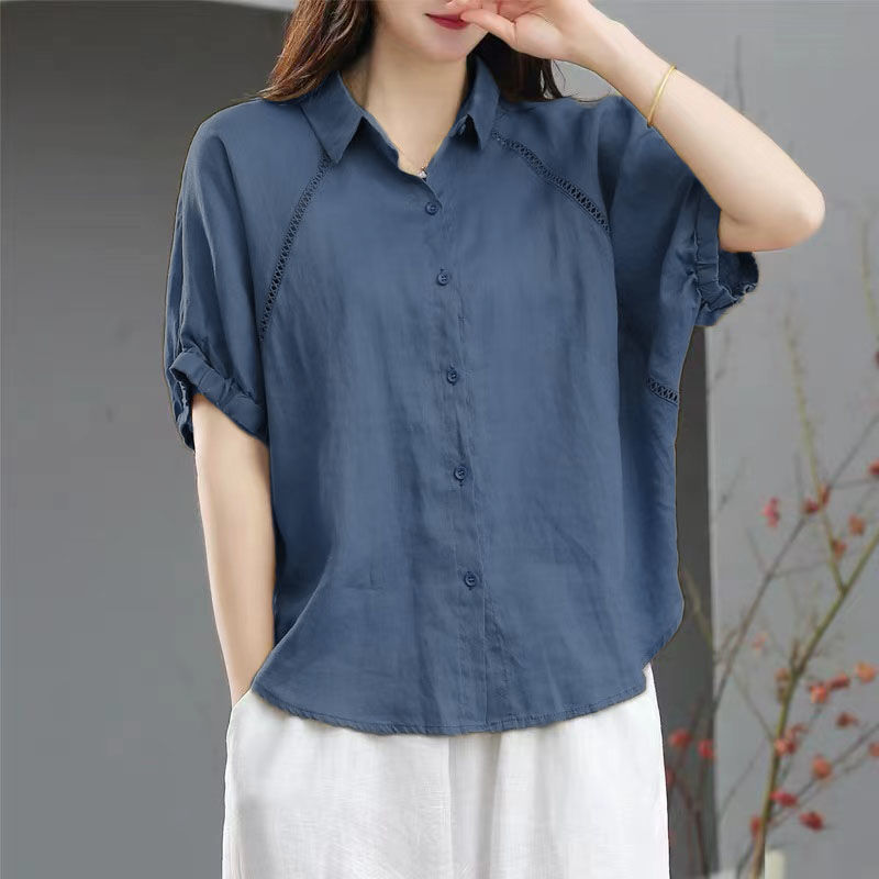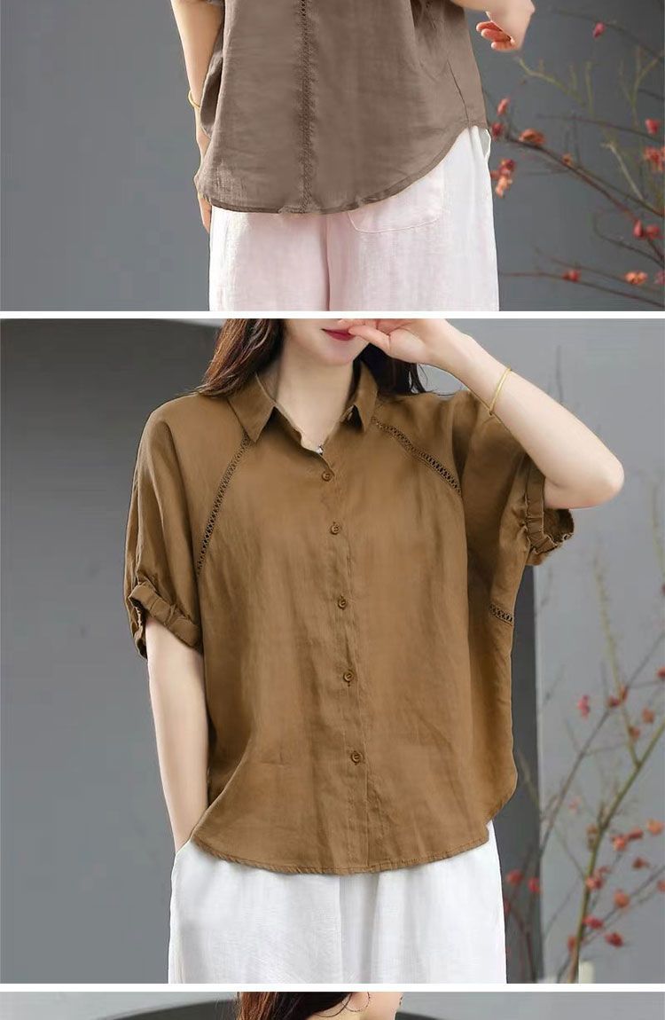 배를 덮는 여성용 반팔 캐주얼 셔츠, 자외선 차단 셔츠, 여름 신작 쉬폰 루즈한 반팔 여성복스토어 가기