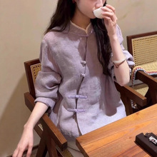 秋冬新中式轻国风香芋紫盘扣立领衬衫高级小众不撞款文艺长袖上衣