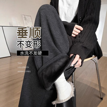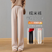 燕麦色糯米裤女小个子冬天裤子秋冬加绒直筒羊绒针织裤窄版阔腿裤