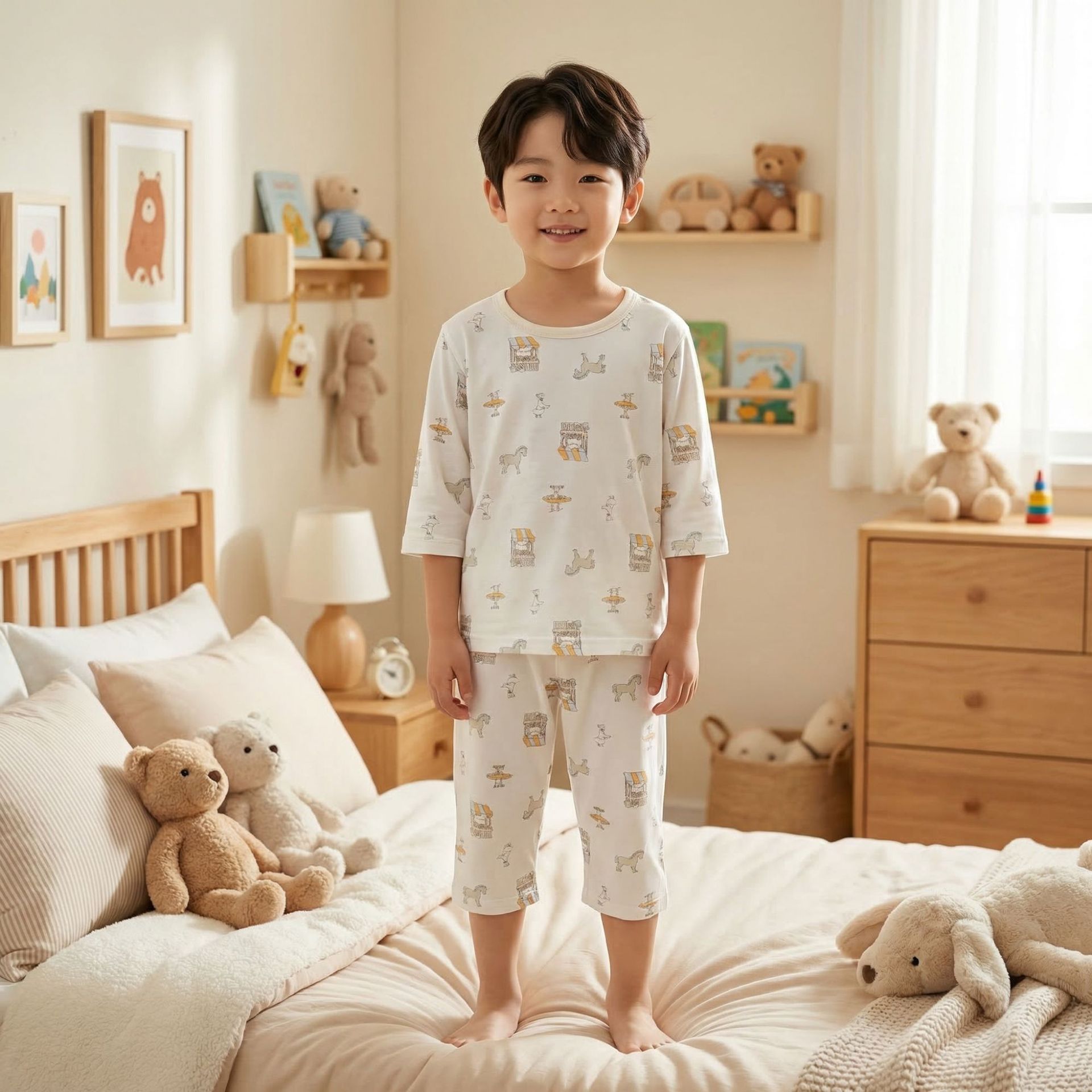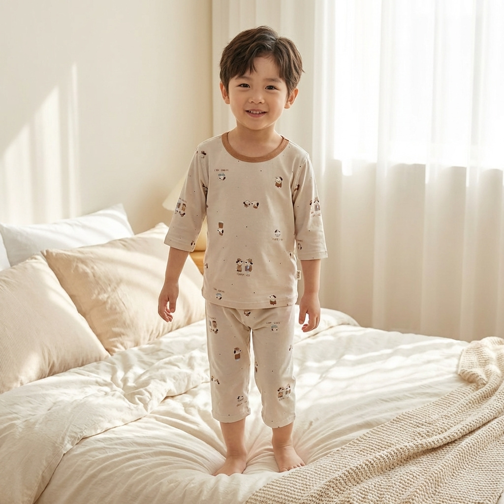 어린이 잠옷 여름 얇은 Yasser 소년 7부 소매 레이스 아기 에어컨 옷 소녀 가정 의류 세트스토어 가기