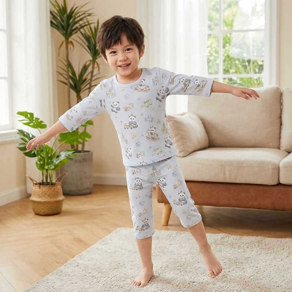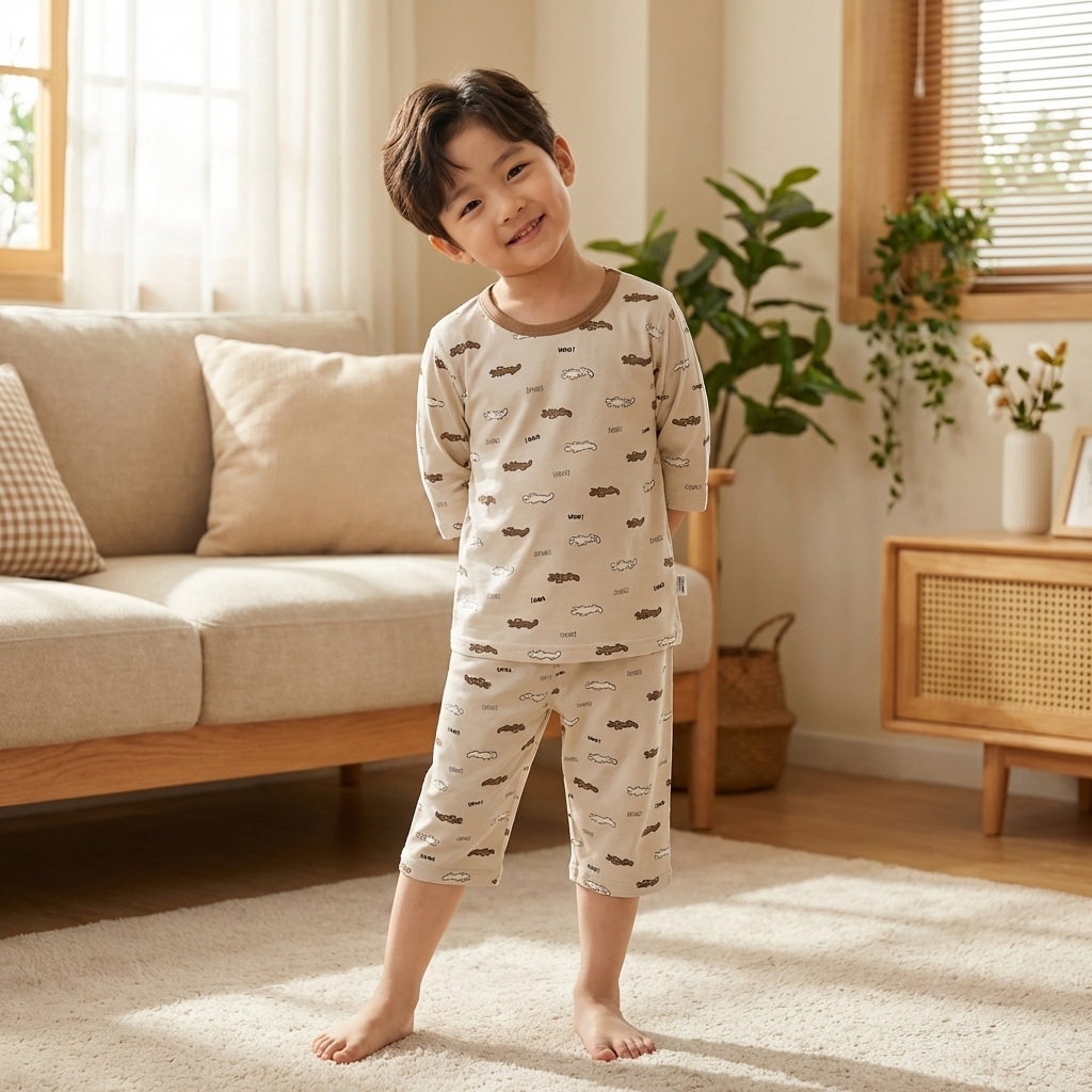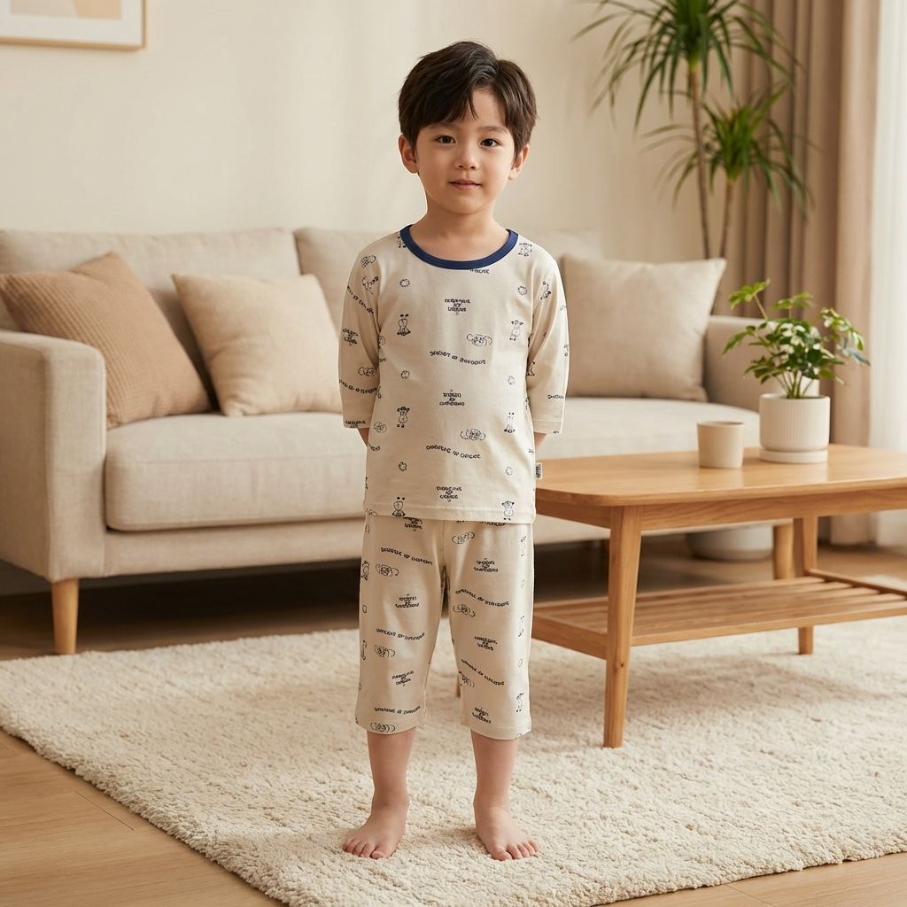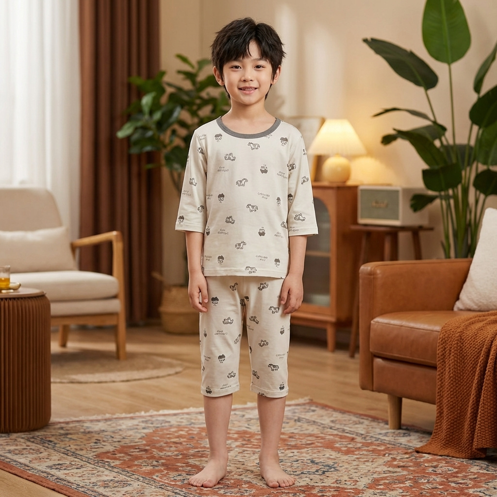 어린이 잠옷 여름 얇은 Yasser 소년 7부 소매 레이스 아기 에어컨 옷 소녀 가정 의류 세트