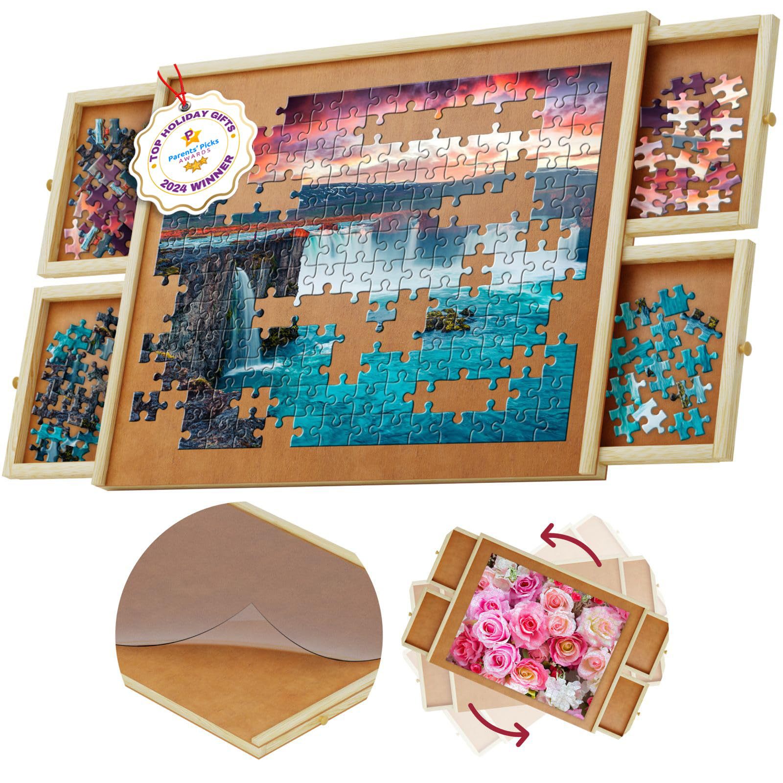 나무 퍼즐 테이블 어린이 교육 장난감 퍼즐 보관 회전식 퍼즐 테이블 부모-자식 대화 형 게임 퍼즐 보드스토어 가기