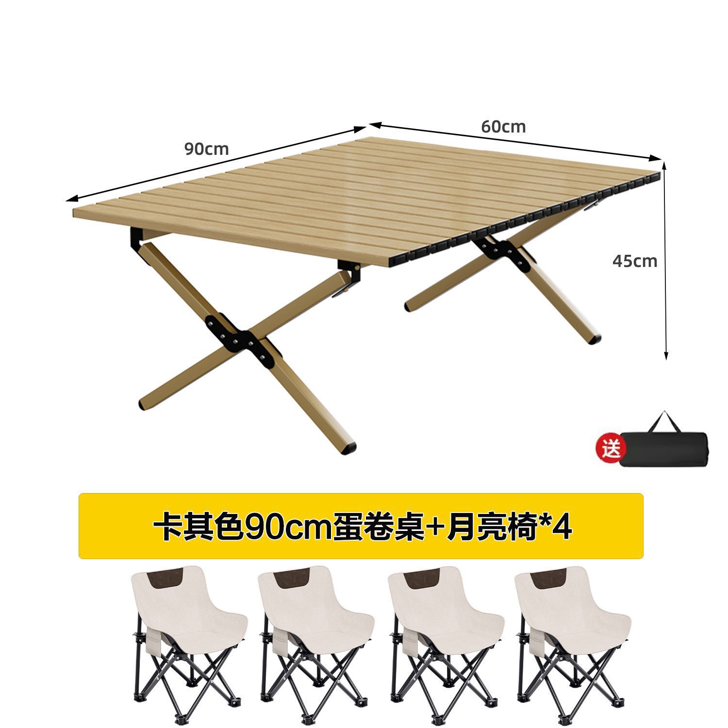 • 카키색 90cm 에그롤 테이블 + 달의자 4개丨무료 수납가방