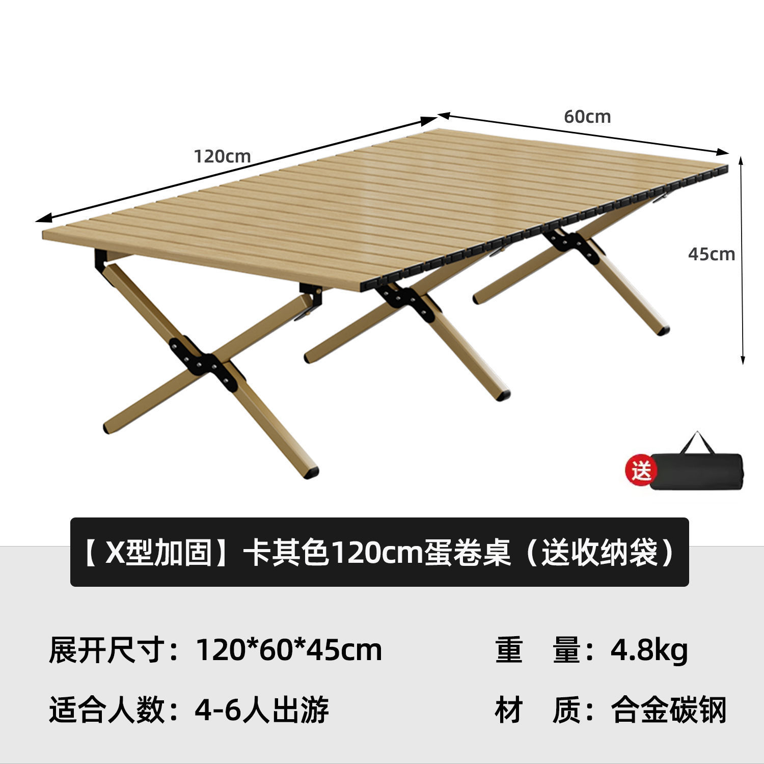 • [X자형 보강] 카키 120cm 에그롤 테이블丨무료 수납가방