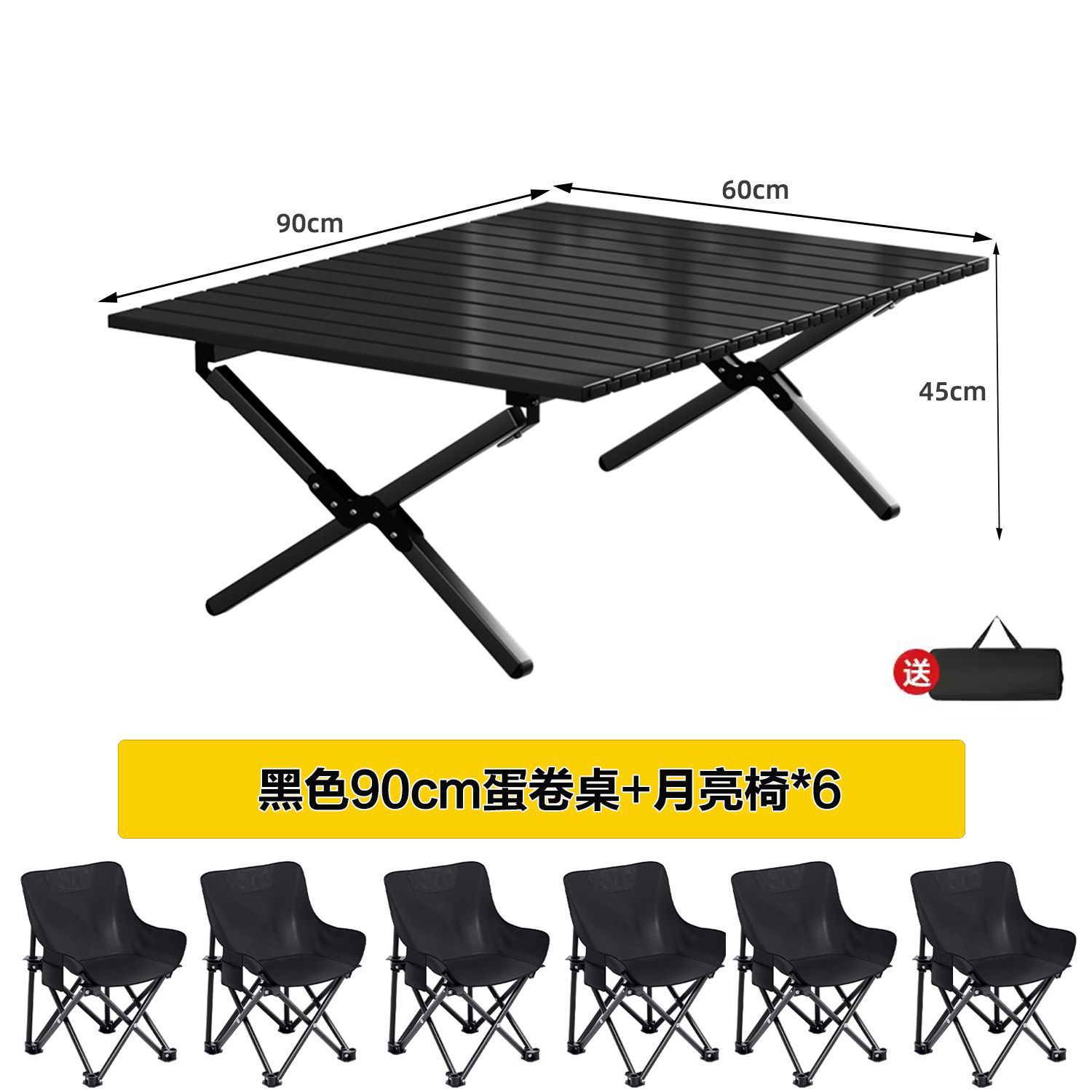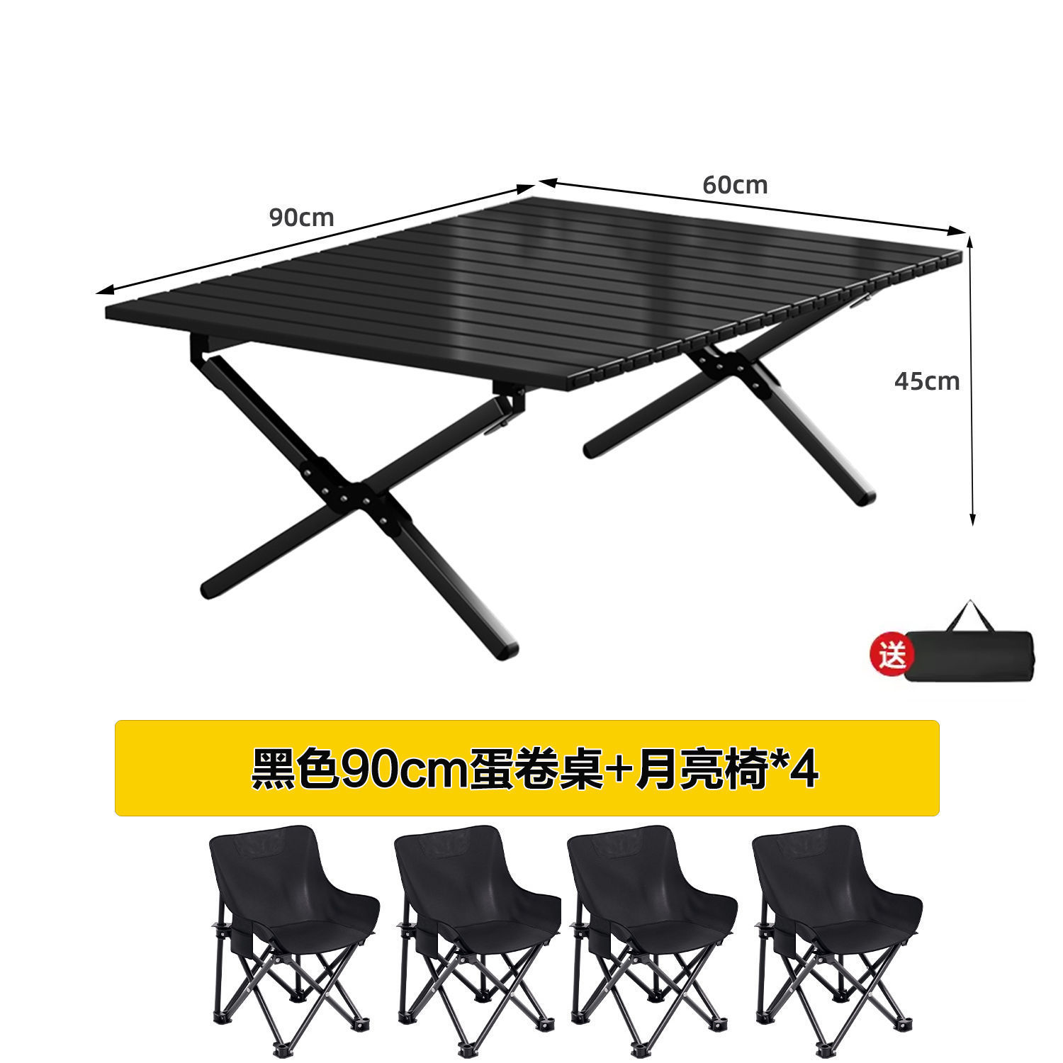• 블랙 90cm 에그롤 테이블 + 달 의자 4개丨무료 수납가방