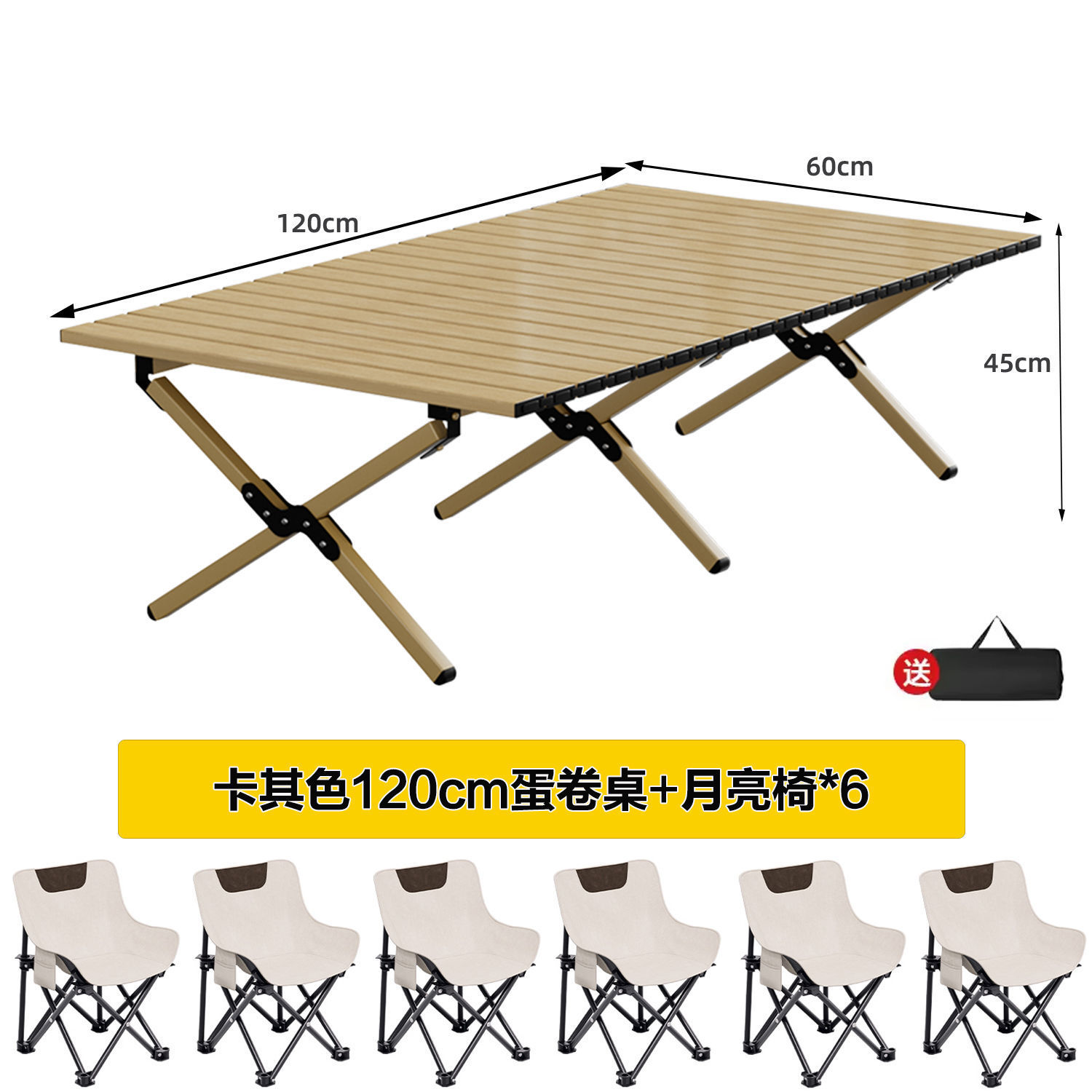 • 카키색 120cm 에그롤 테이블 + 달의자 4개丨무료 수납가방