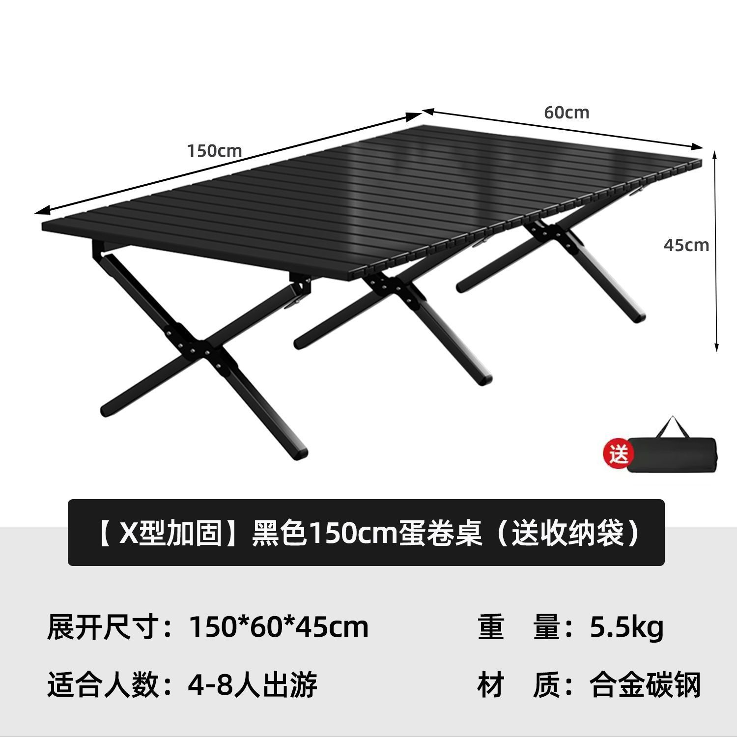 • [X자형 보강] 블랙 150cm 에그롤 테이블丨무료 보관가방