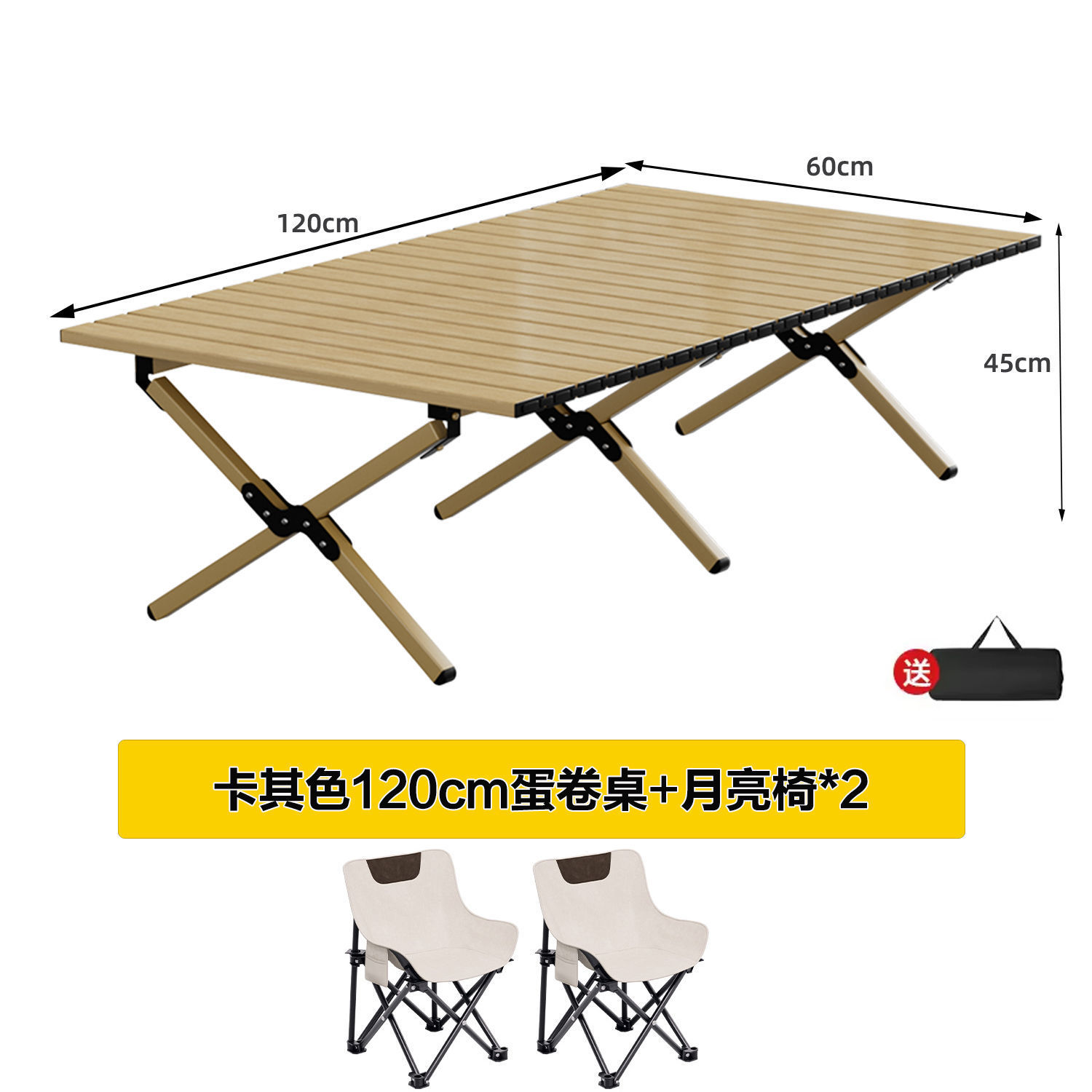 • 카키색 120cm 에그롤 테이블 + 달의자 2개丨무료 수납가방