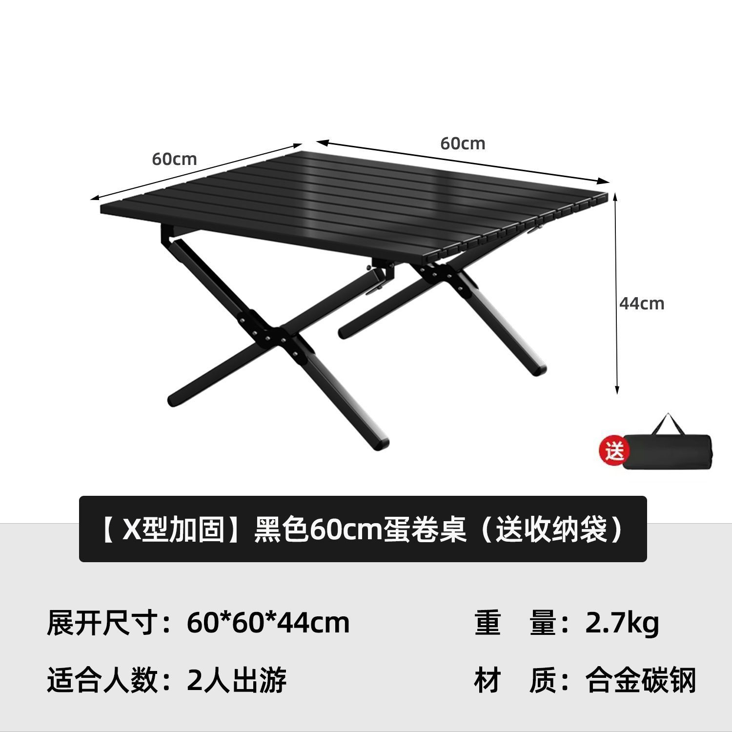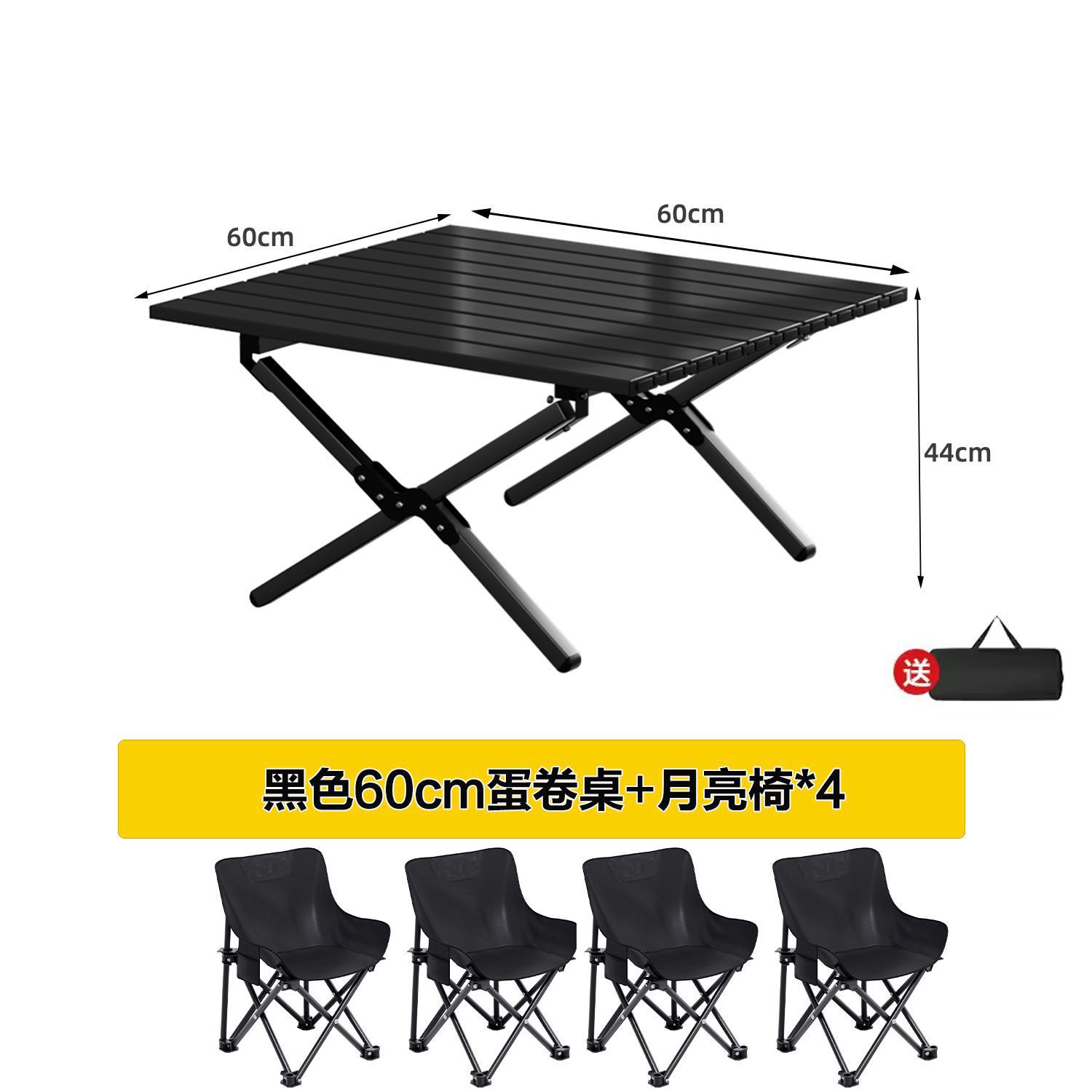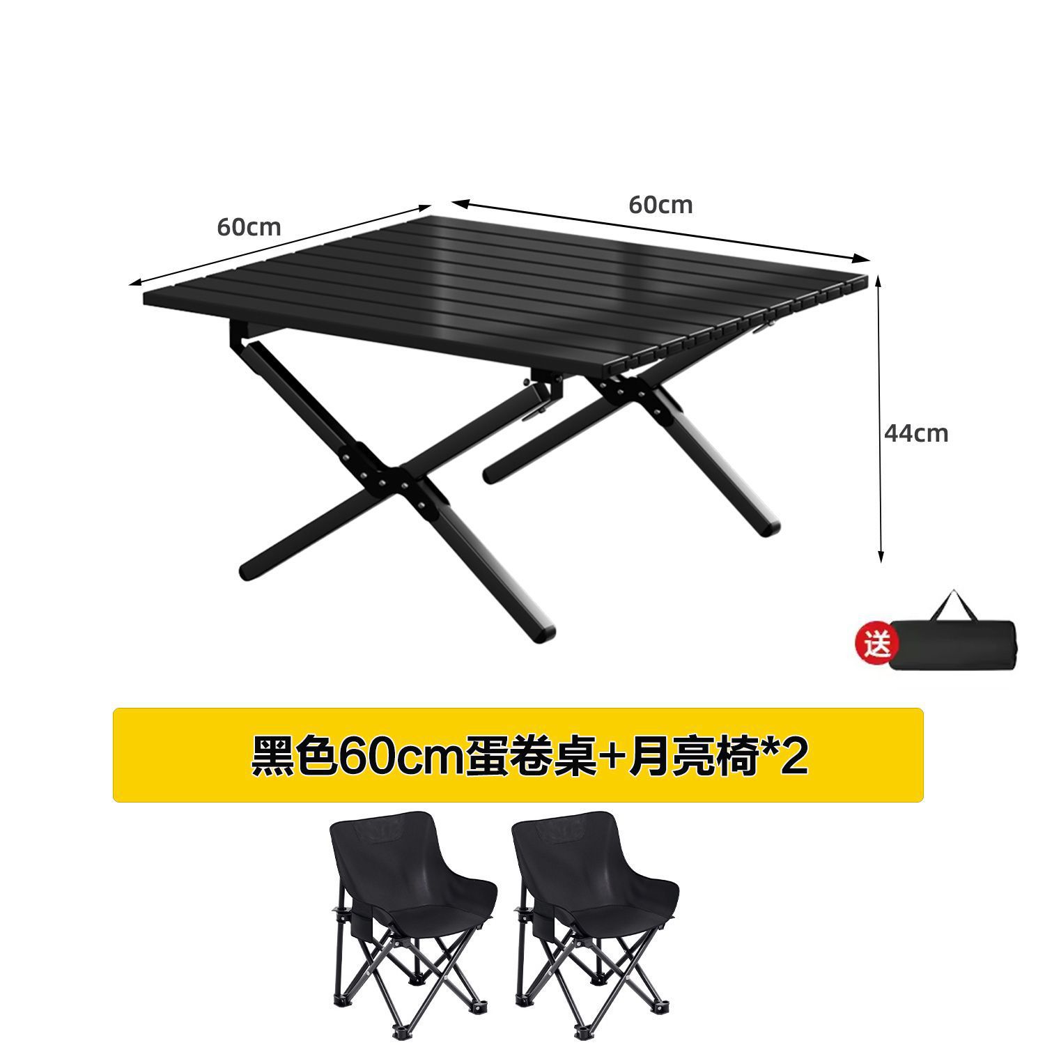 • [X자형 보강] 블랙 60cm 에그롤 테이블丨무료 수납가방