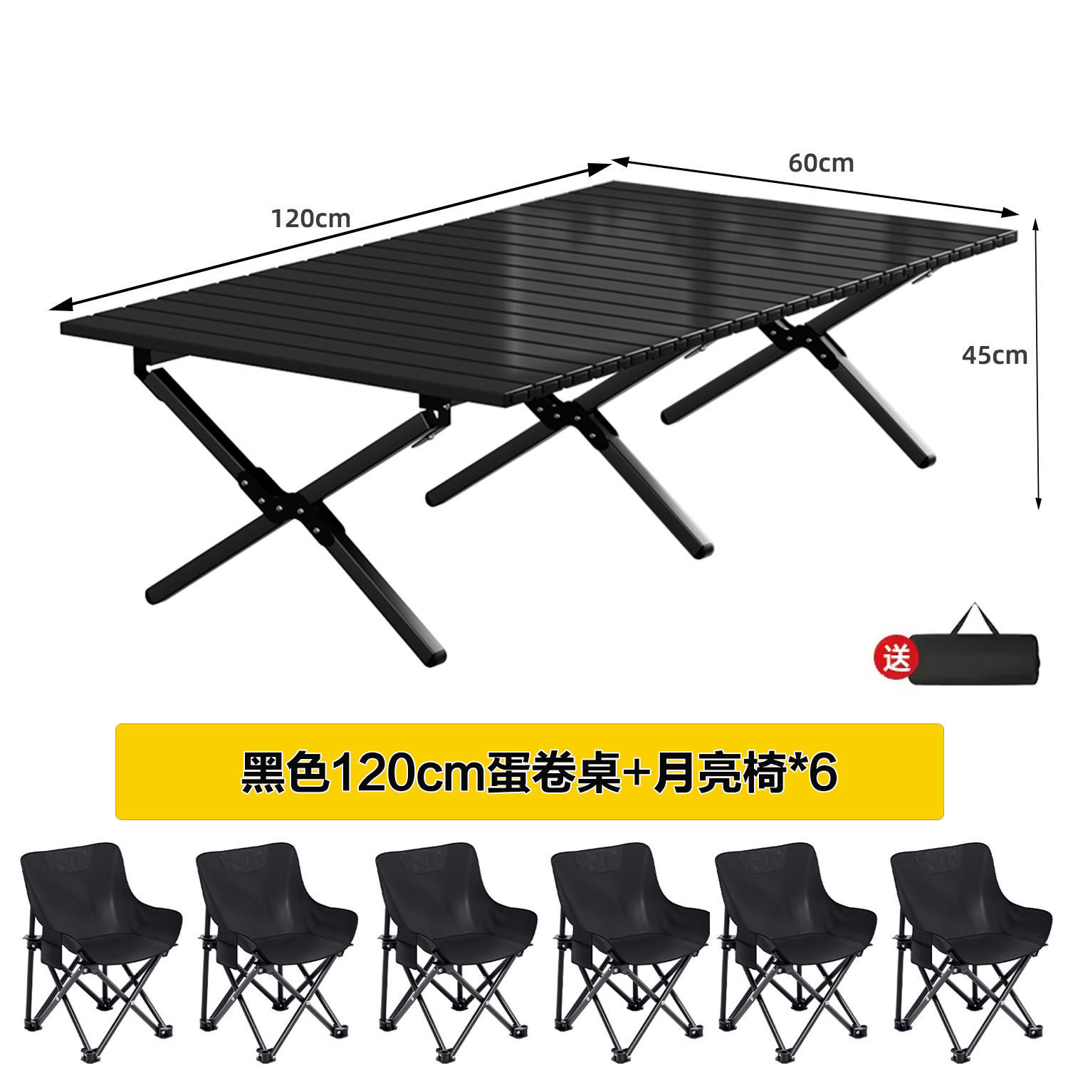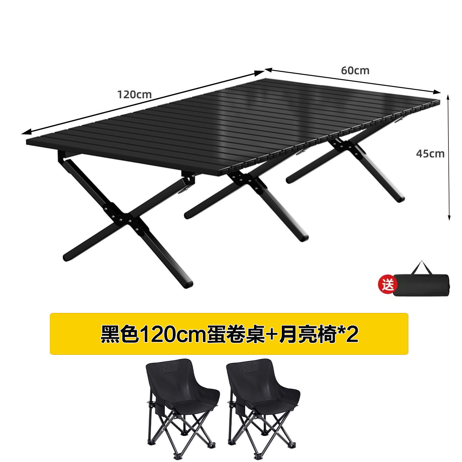 • [X자형 보강] 블랙 120cm 에그롤 테이블丨무료 수납가방