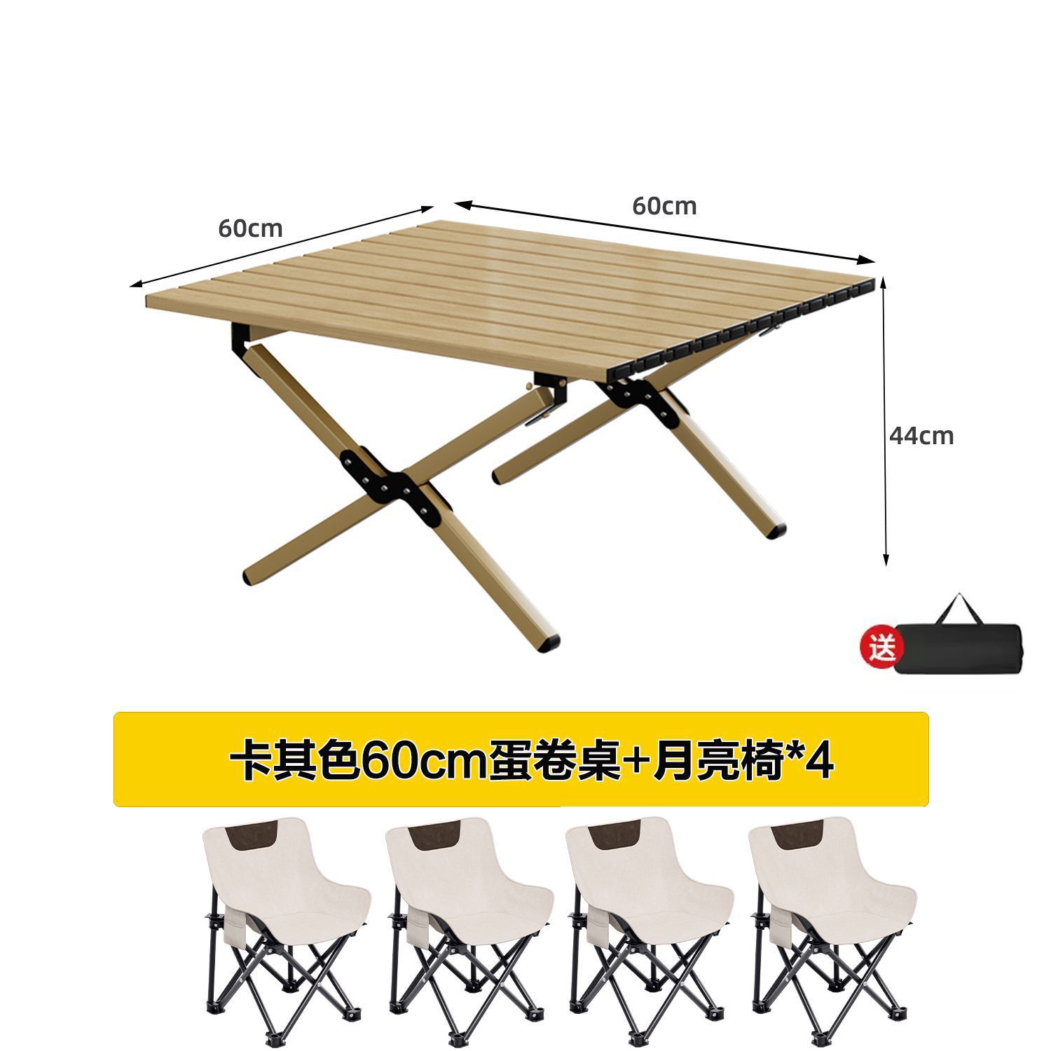 • 카키색 60cm 에그롤 테이블 + 달의자 4개丨무료 수납가방