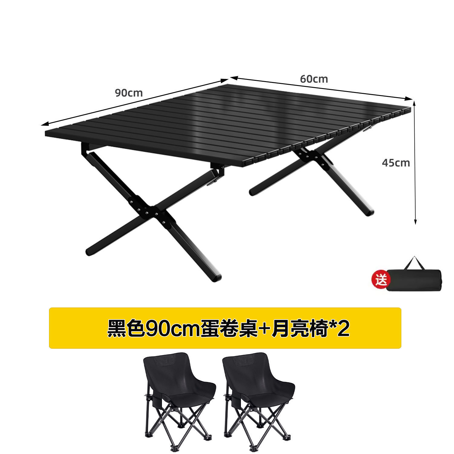 • [X자형 보강] 블랙 90cm 에그롤 테이블丨무료 보관가방