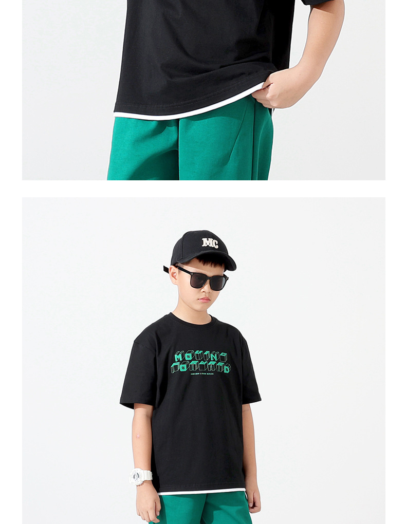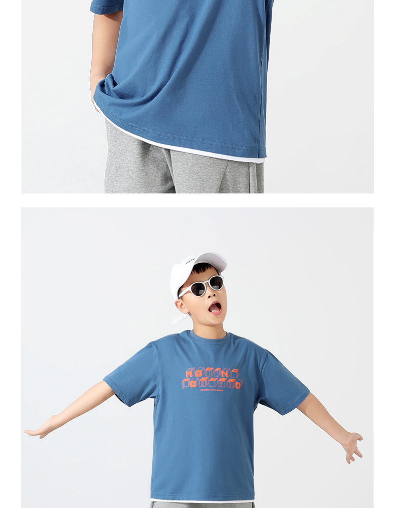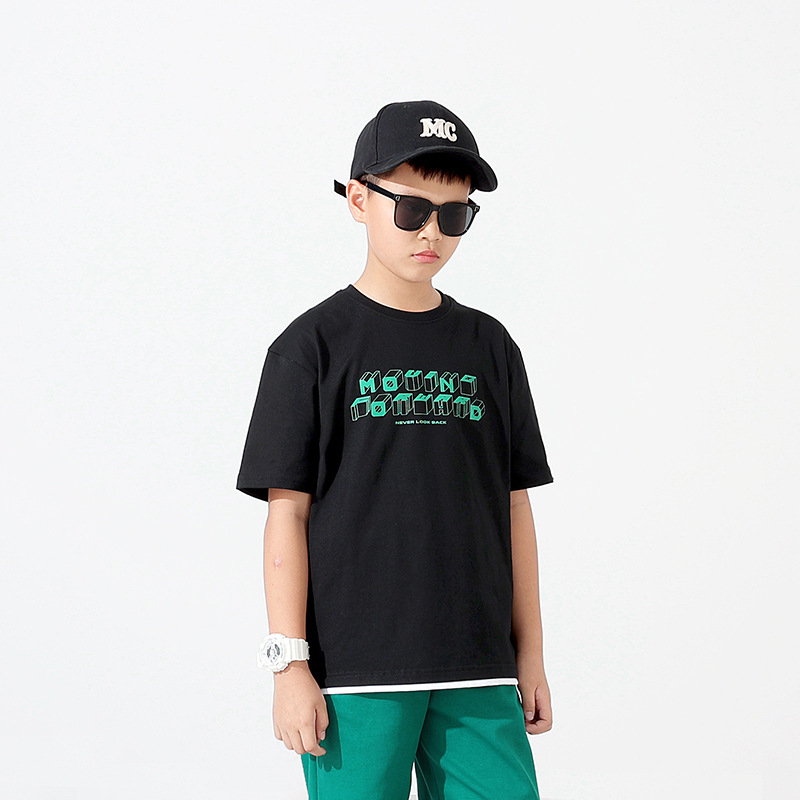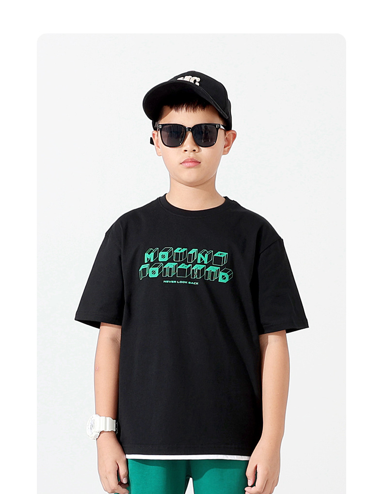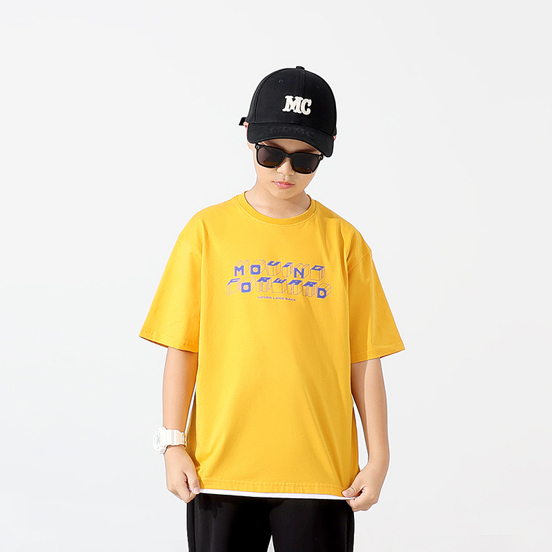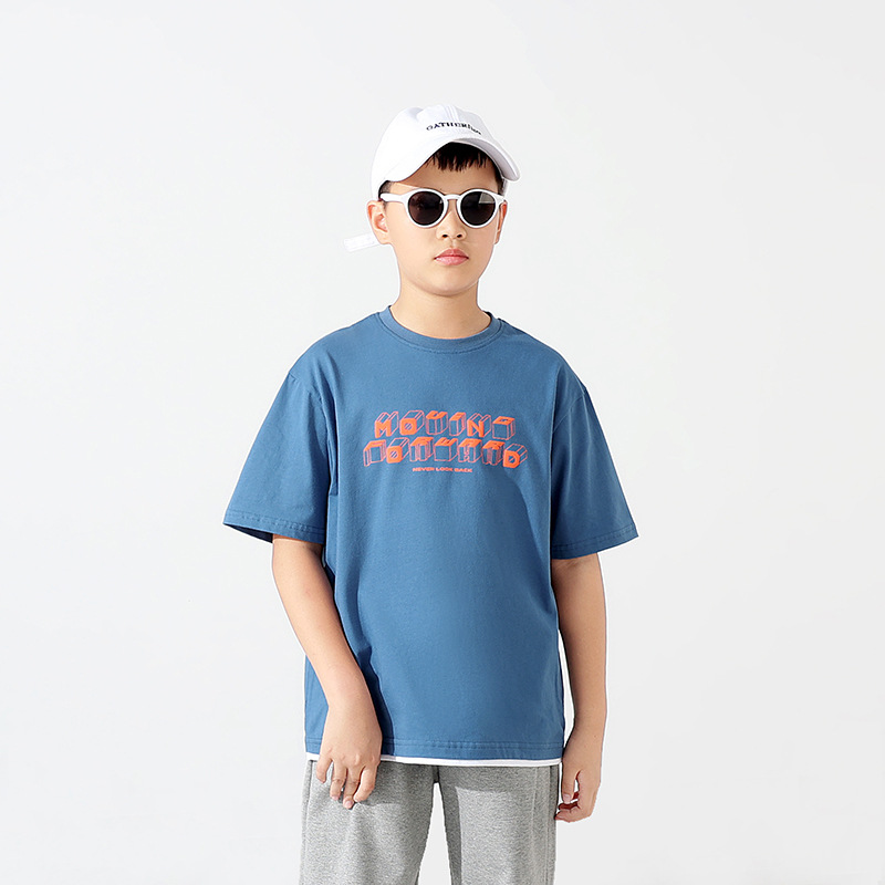 아동복 한국신상 아동복 스포츠 반소매 중대형 아동용 가짜 투피스 3 차원 반팔 티셔츠 소년용스토어 가기