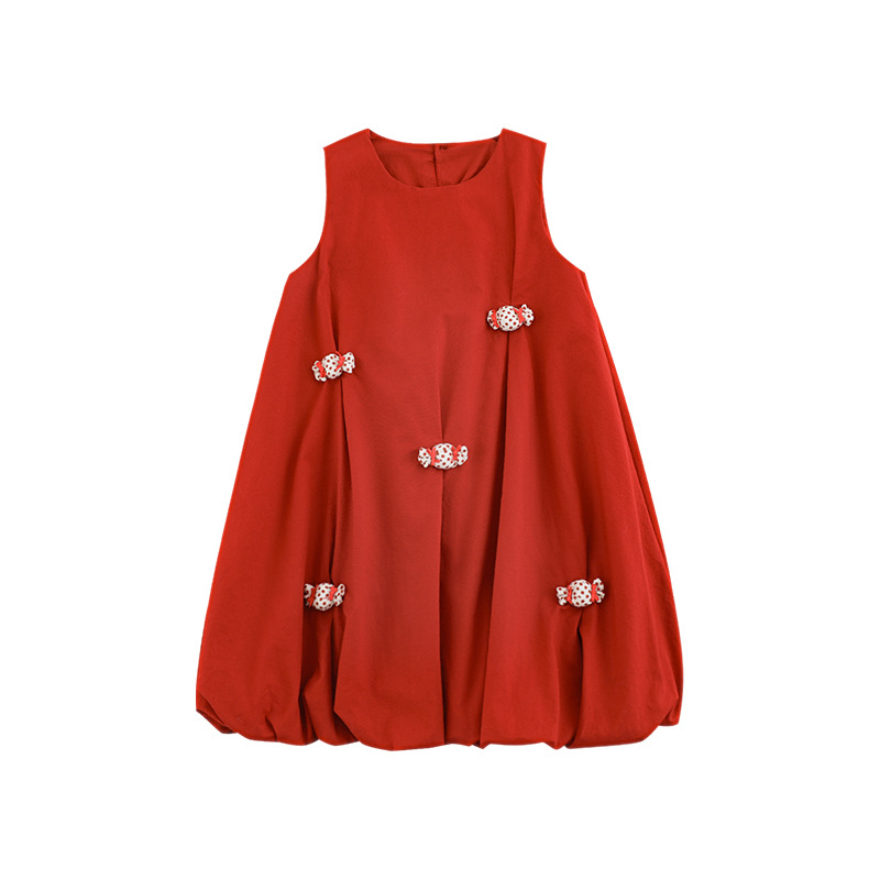 Wulibuyi 소녀의 입체 캔디 조끼 드레스 2025 여름 달콤하고 귀여운 멋진 민소매 꽃 드레스