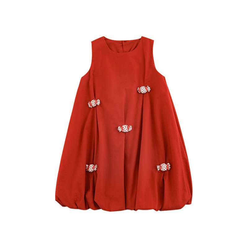 Wulibuyi 소녀의 입체 캔디 조끼 드레스 2025 여름 달콤하고 귀여운 멋진 민소매 꽃 드레스스토어 가기