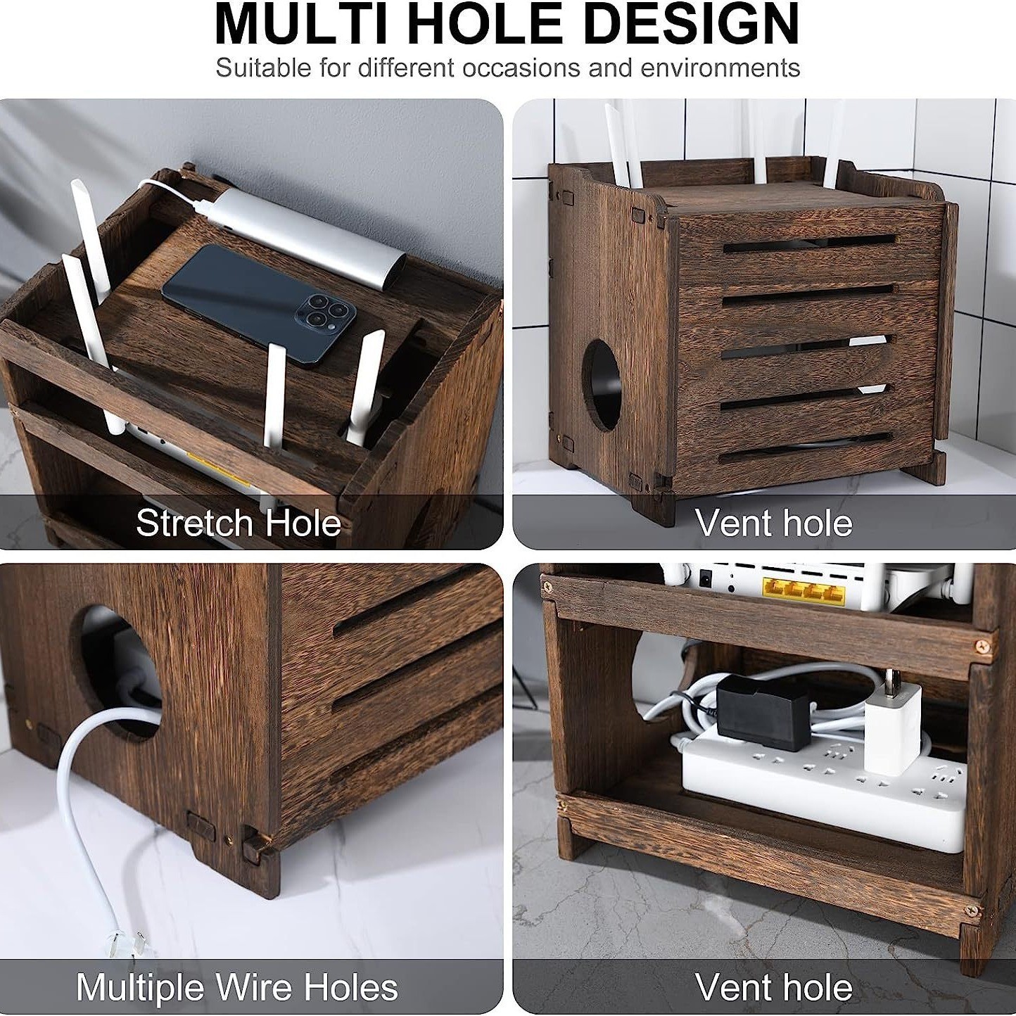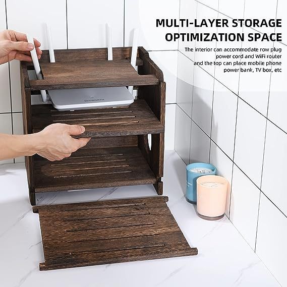 라우터 wifi 보관 상자 단단한 나무 대용량 셋톱 박스 보관 선반 라이트 고양이 와이어 플러그 인라인 네트워크 케이블 상자스토어 가기