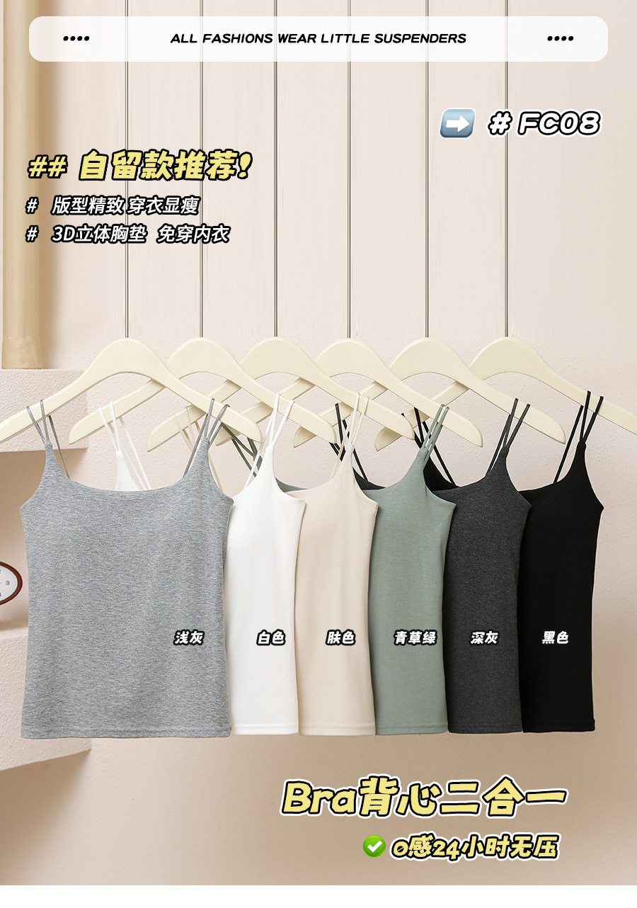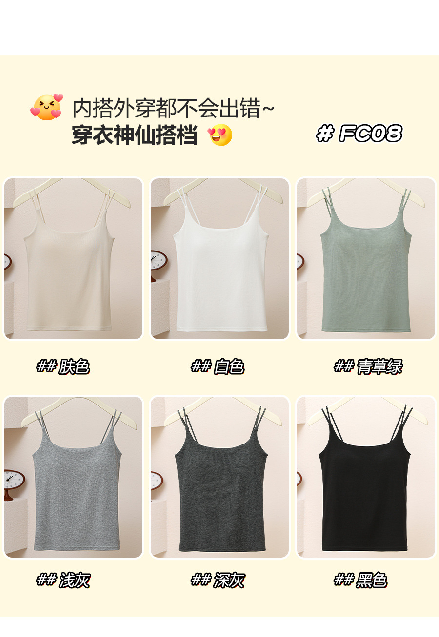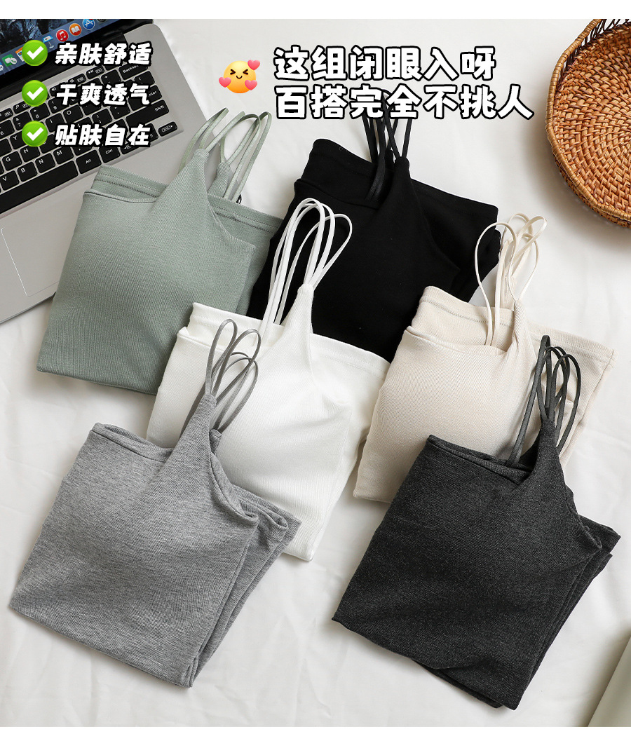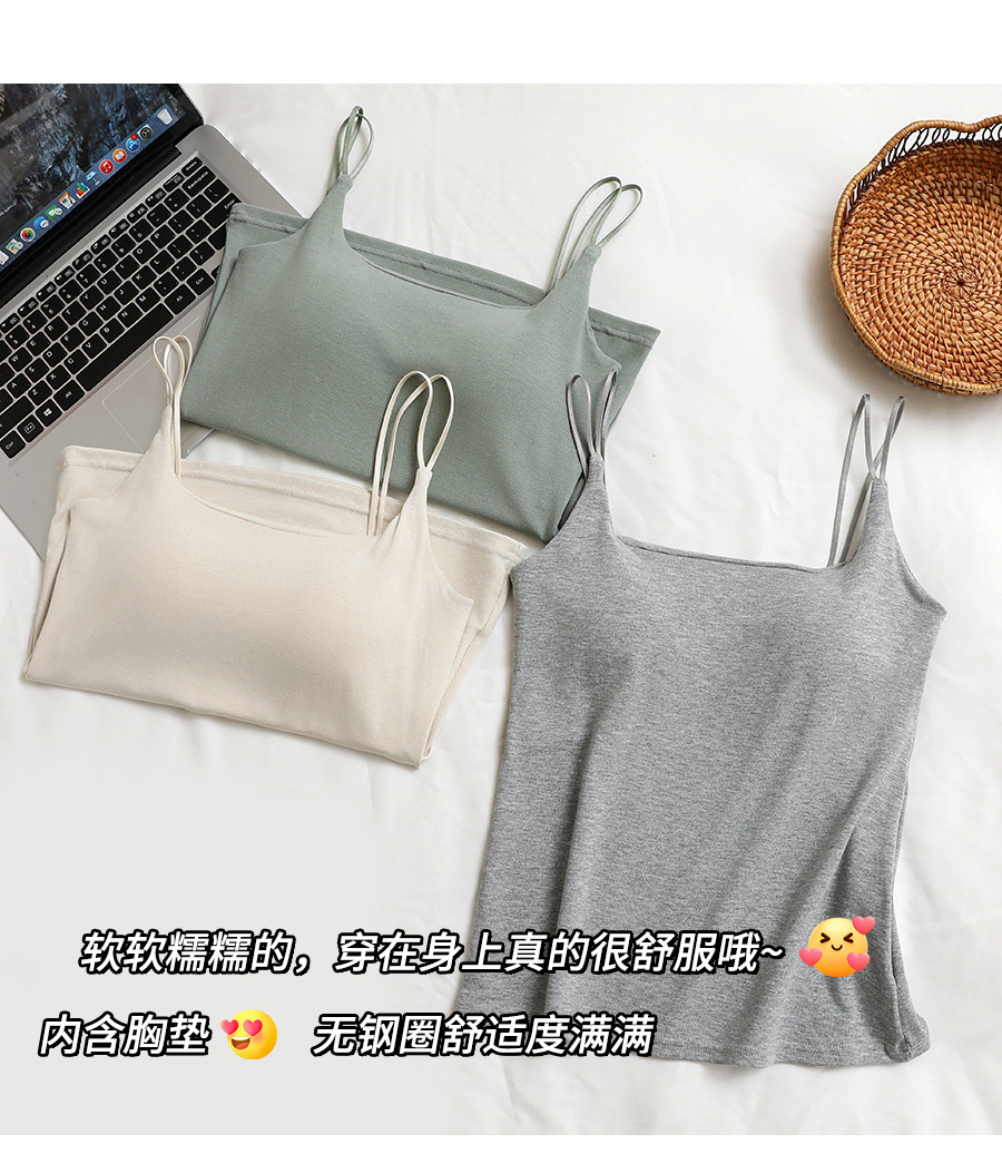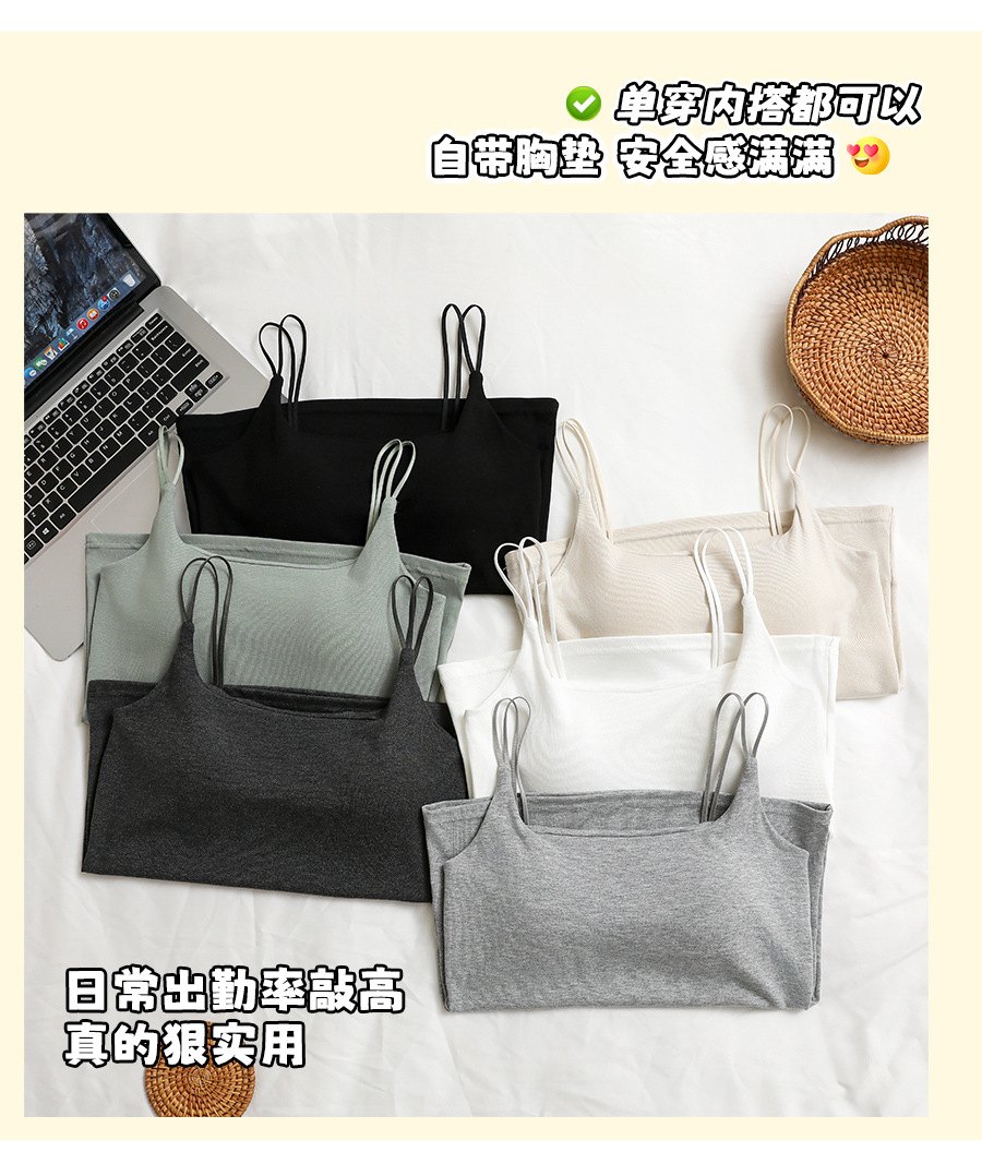 가슴 패드가 있는 얇은 어깨 캐미솔, 여름 노출 방지, 섹시하고 밖에서 착용 가능, 아름다운 등, 슬리밍 여성용 베이스 레이어스토어 가기