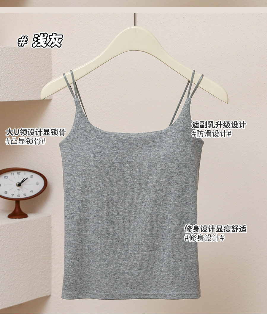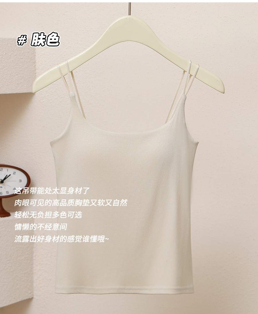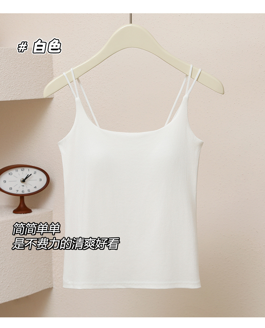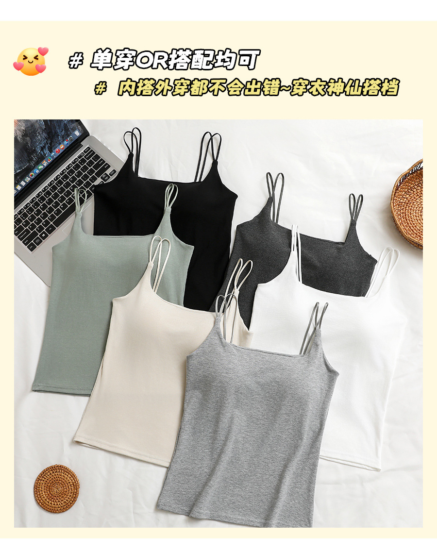 가슴 패드가 있는 얇은 어깨 캐미솔, 여름 노출 방지, 섹시하고 밖에서 착용 가능, 아름다운 등, 슬리밍 여성용 베이스 레이어