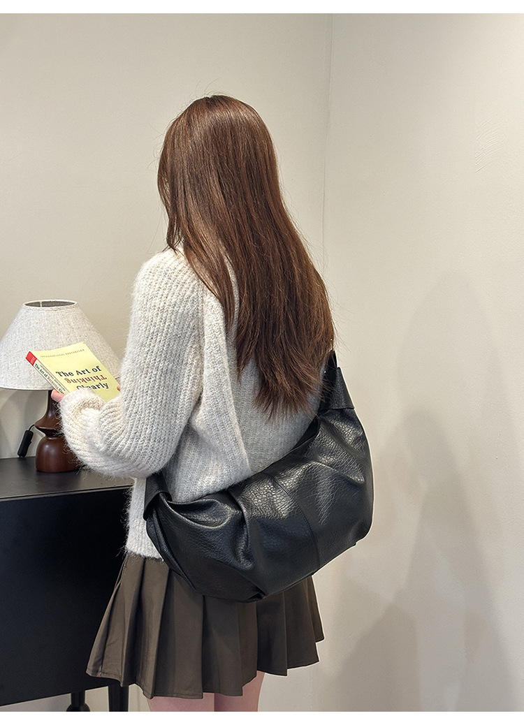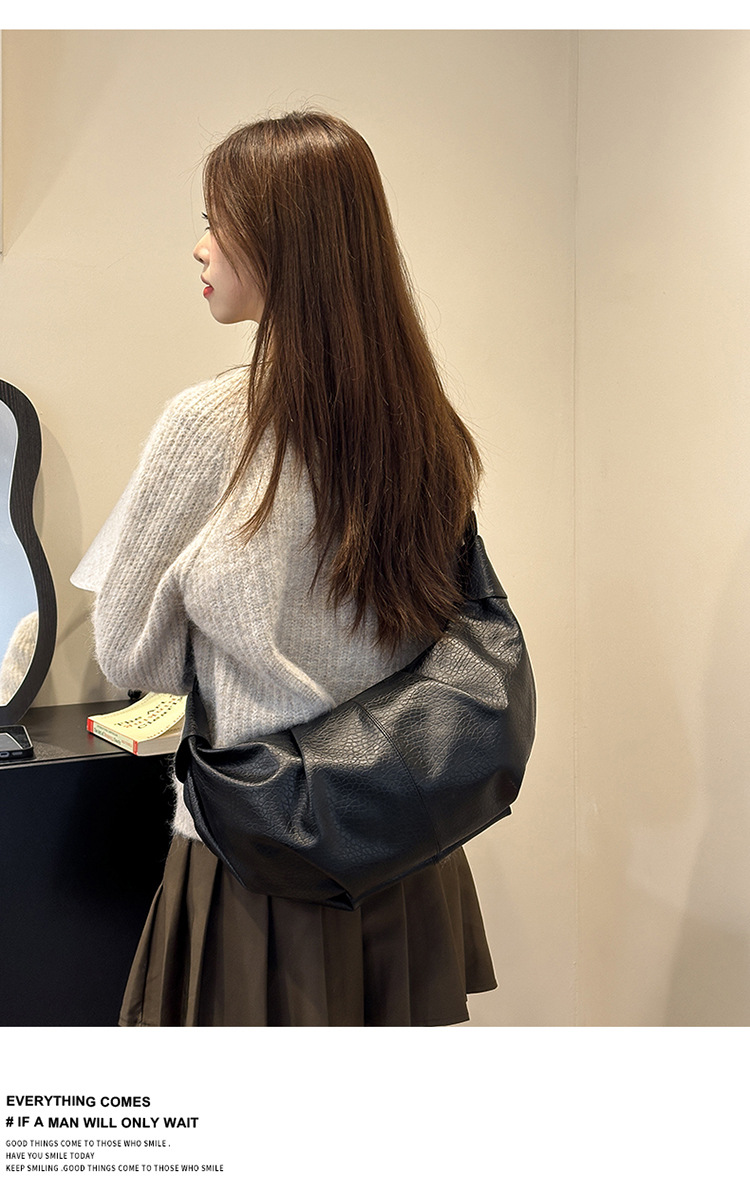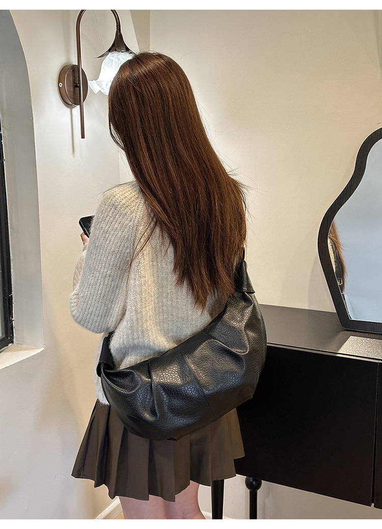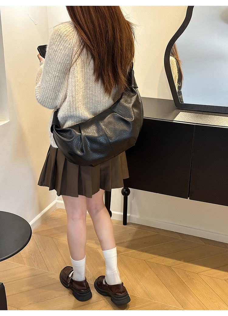 빈티지 주름 만두 백 대용량 문 가방 매듭 어깨 끈 어깨 크로스 바디 백 오일 왁스 PU 여성용 가방스토어 가기