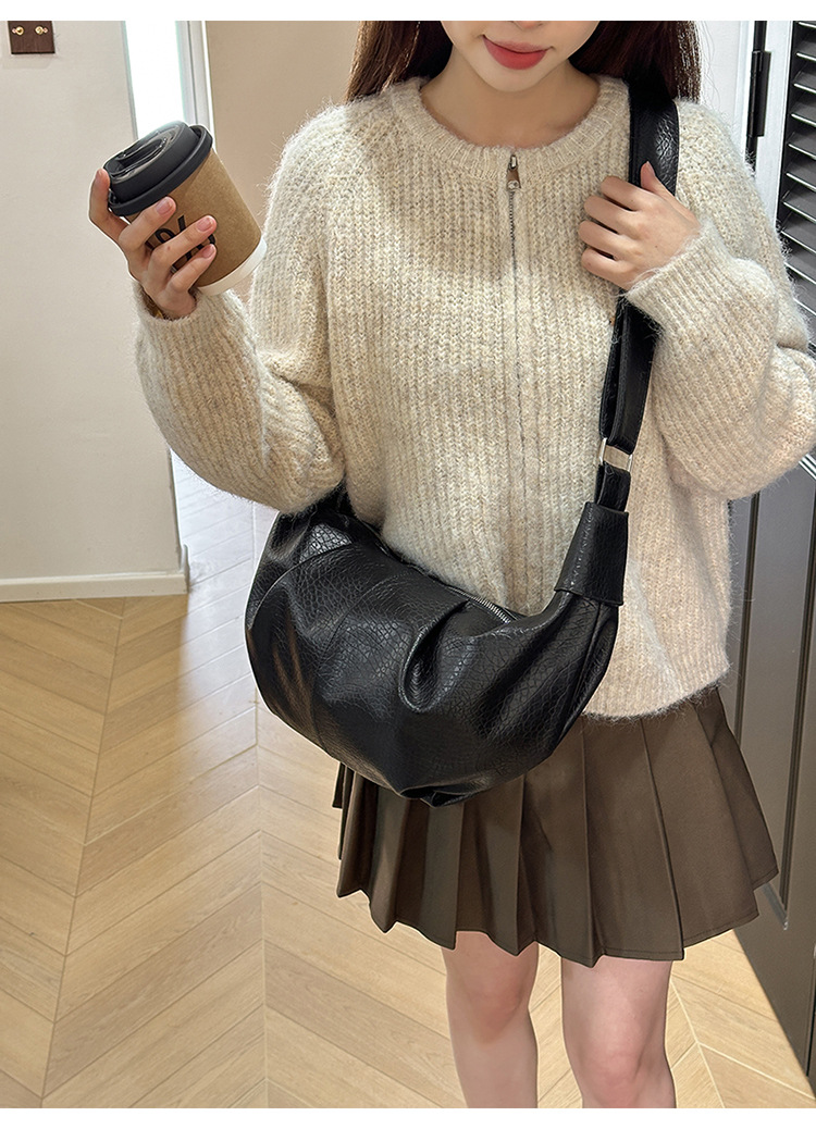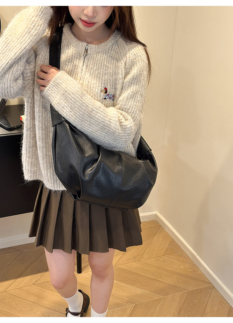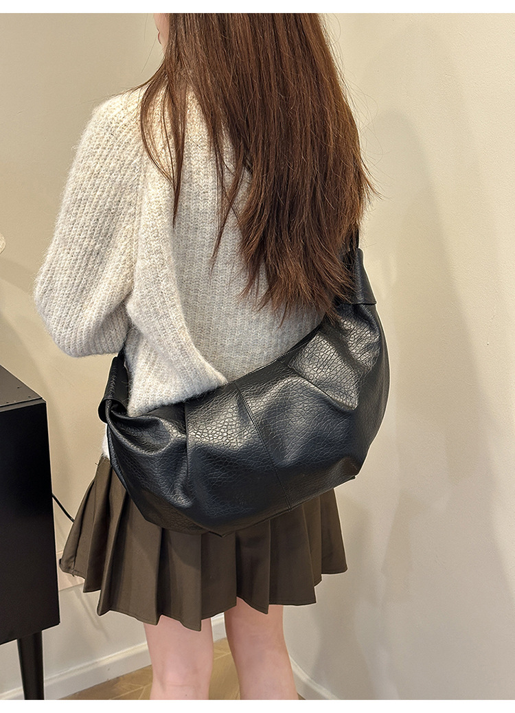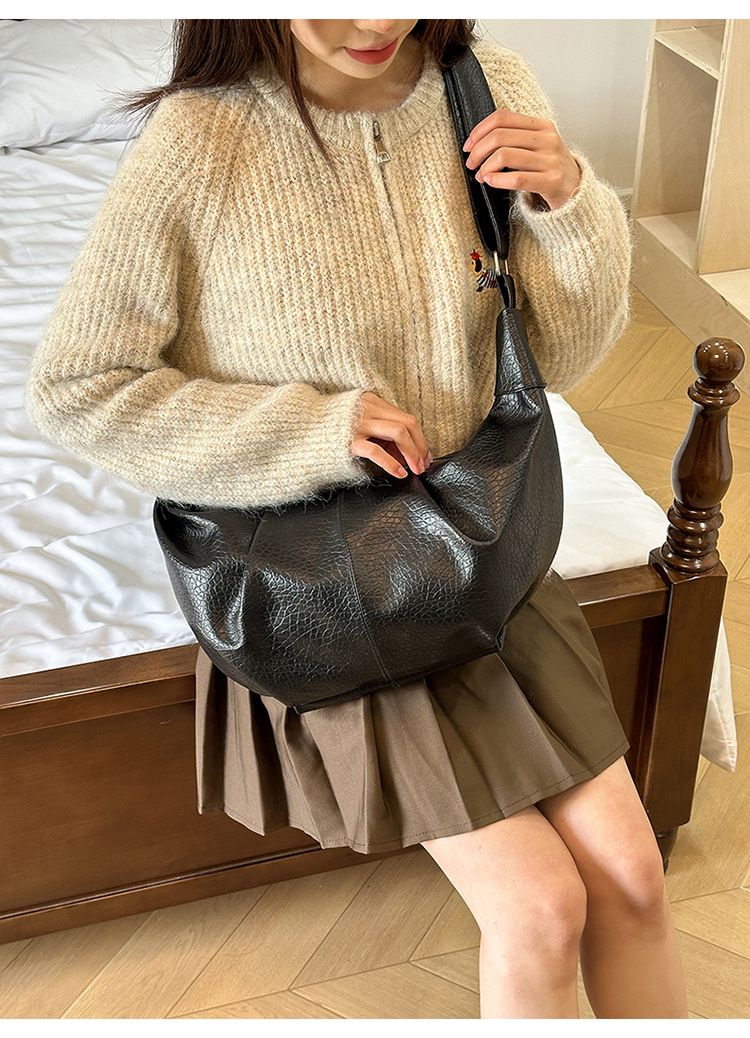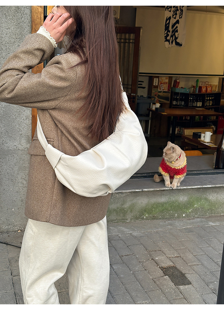 빈티지 주름 만두 백 대용량 문 가방 매듭 어깨 끈 어깨 크로스 바디 백 오일 왁스 PU 여성용 가방스토어 가기