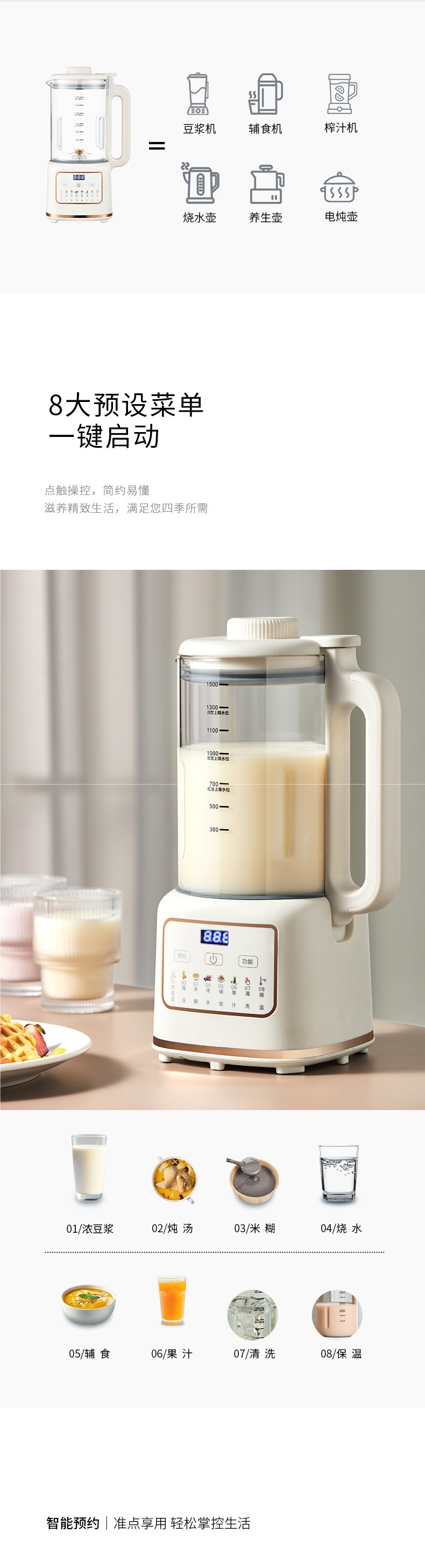 • 유리 라이너 1800ML [48페이지 황금 티타늄 칼 + 항균 티타늄 도금 섀시]
