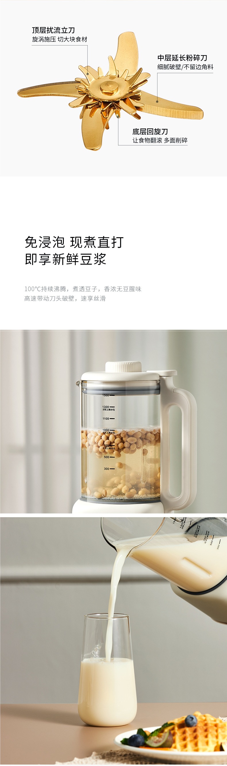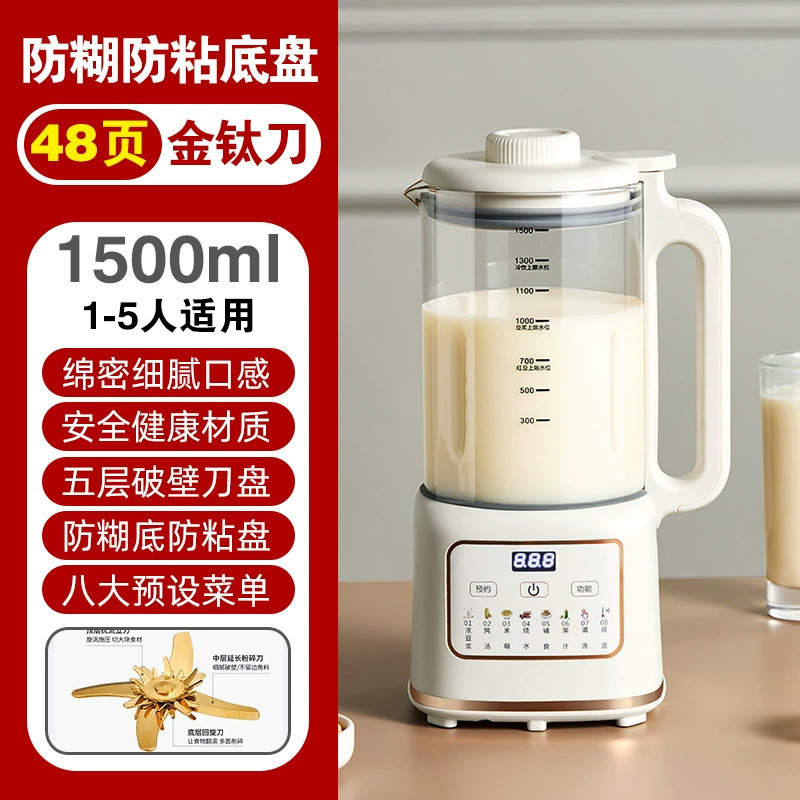 • 유리 라이너 1500ML [48페이지 금 티타늄 칼날 + 페이스트 방지 바닥 가열판]