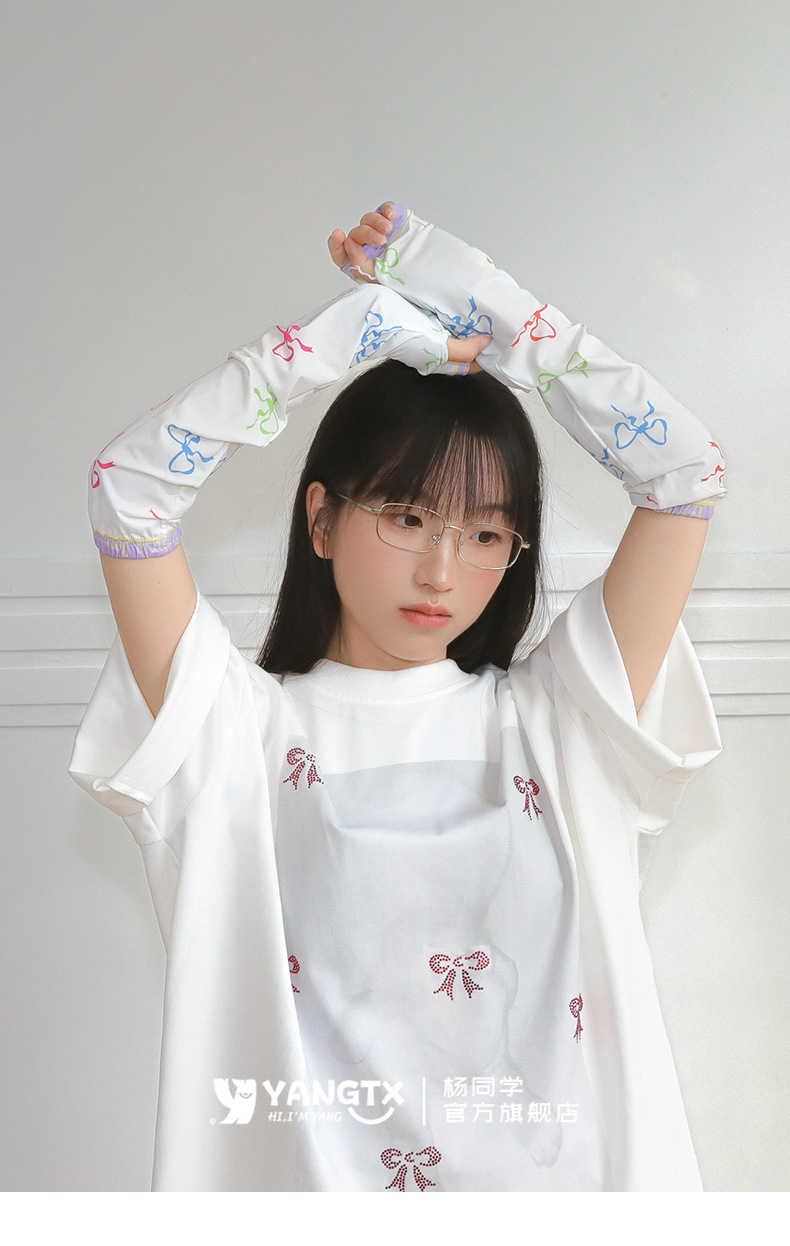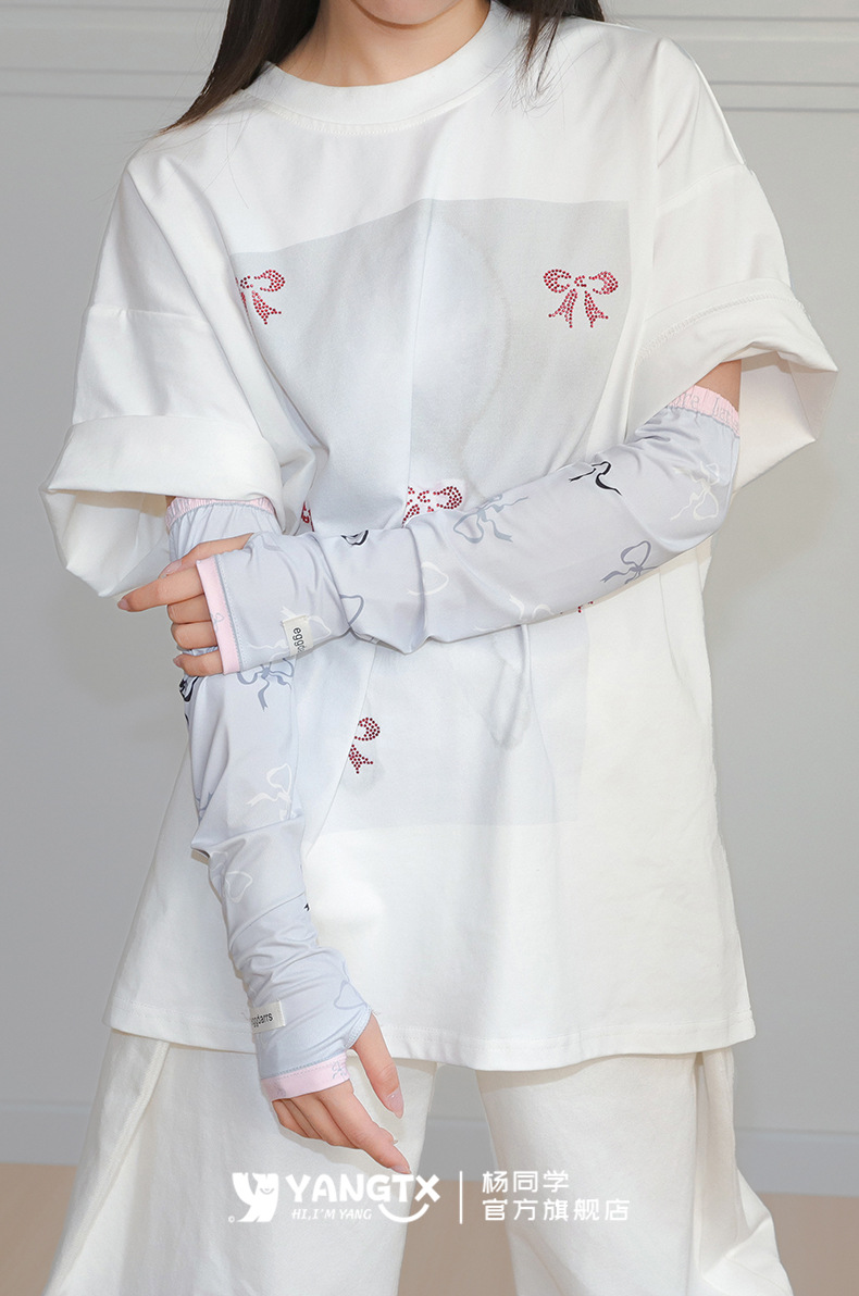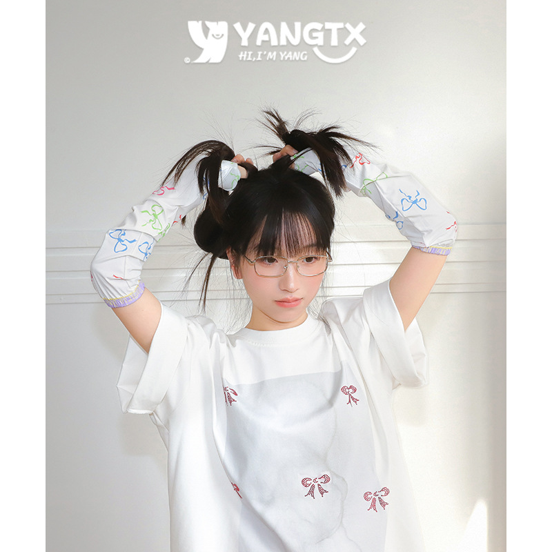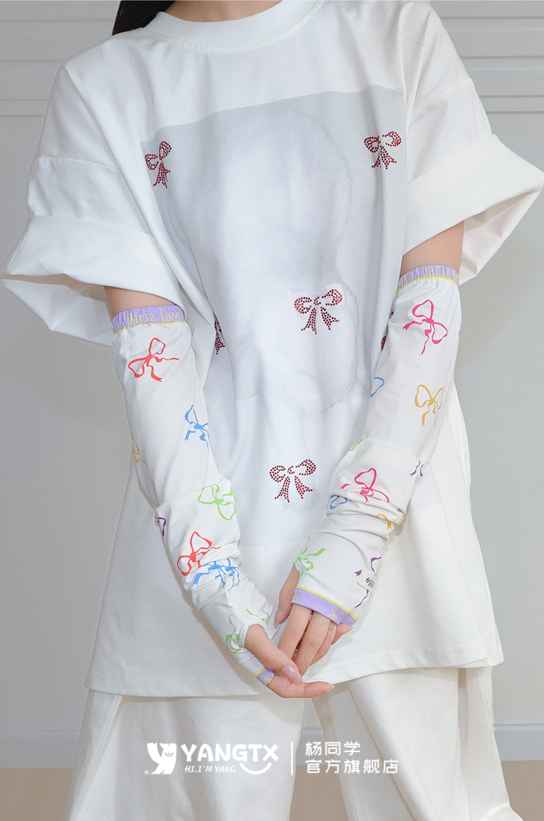 [양동생] 컬러풀한 리본무늬 아이스슬리브 여성 여름 사이클링 전기자동차 자외선 차단 슬리브 손가락 슬리브 루즈스토어 가기